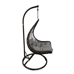 Sillón colgante de fibras plásticas café con cojines