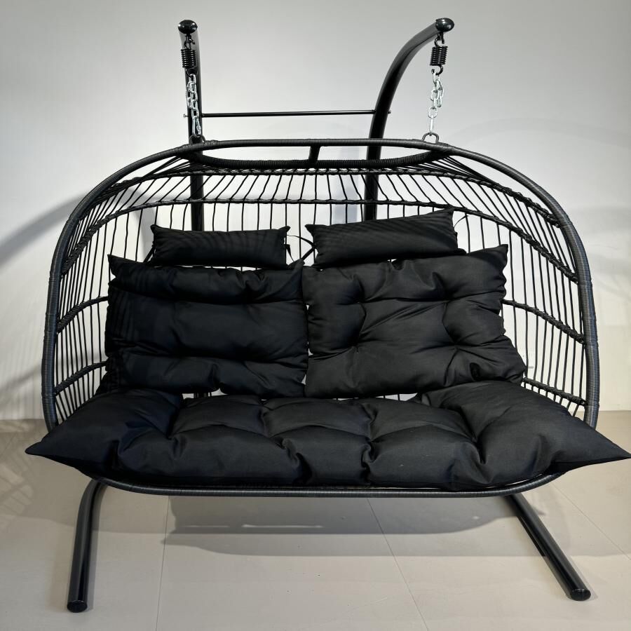 Este sillón colgante dúo es la pieza perfecta para crear un rincón de relajación compartida en tu jardín, terraza o patio. Su diseño espacioso está pensado para dos personas, con una robusta estructura de metal y un tejido de ratán sintético en un tono oscuro que le da un toque moderno y acogedor. Con unas dimensiones de 126x65x110cm, es un mueble funcional que soporta un peso máximo de 140kg. Los cojines acolchados brindan un confort superior, invitándote a disfrutar de momentos de descanso en pareja o con amigos.