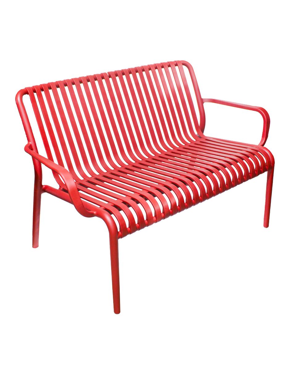 Sillón de 2 plazas de plástico con descansabrazos rojo diseño tiras de 73x119x77cm