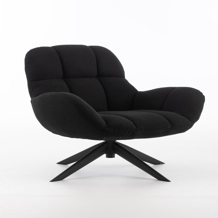 La máxima comodidad en un solo lugar. Este sillón giratorio de tela negra es la pieza perfecta para relajarte en tu hogar. Con sus medidas de 72x81x89cm y un peso máximo soportado de 136kgs, su diseño evoca elegancia y confort.