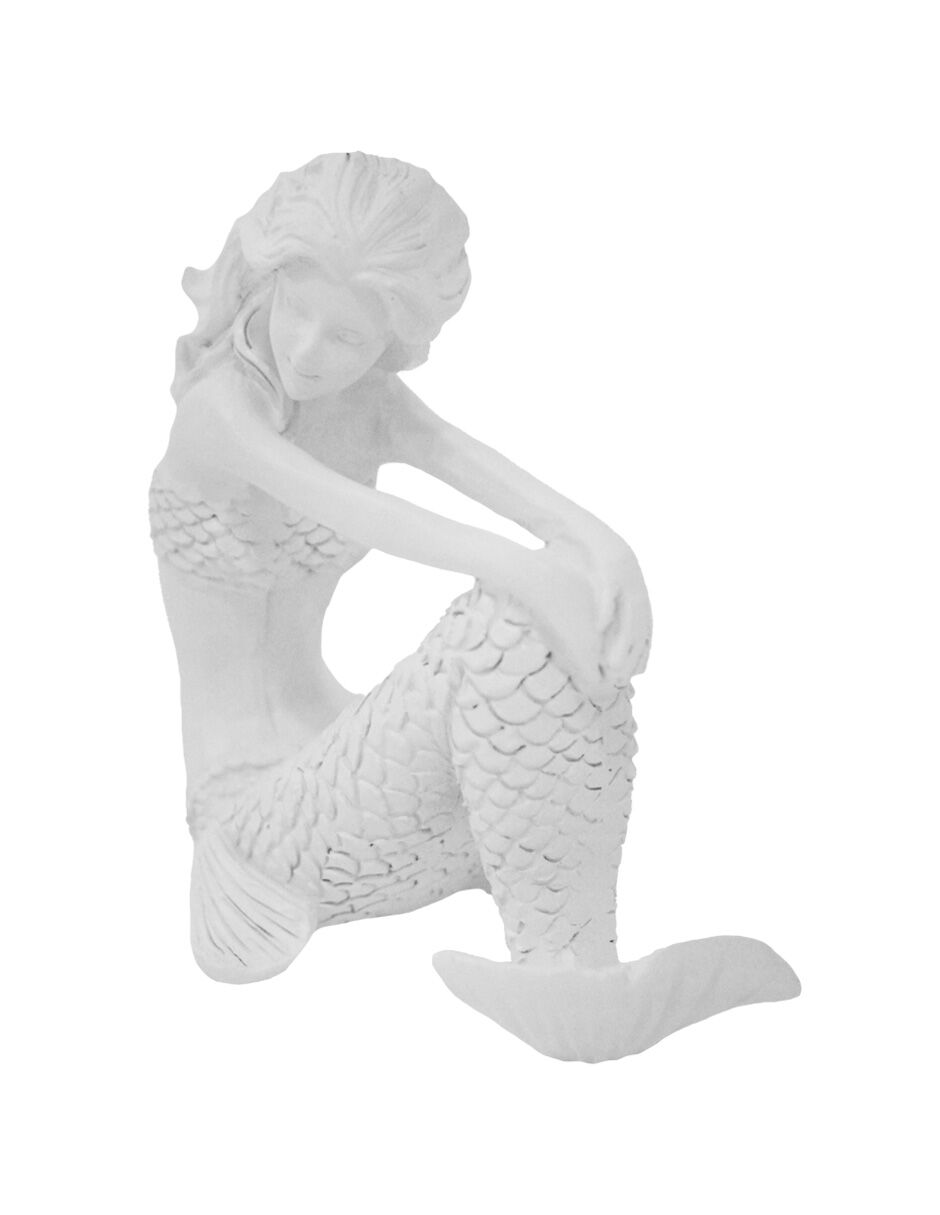 Sirena sentada de poliresina blanco de 7.5x4x7cm