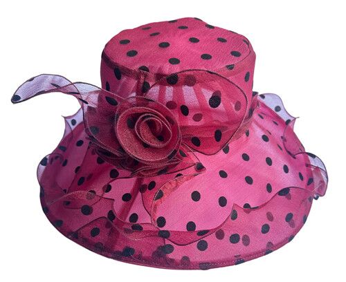 Sombrero rojo con puntos negros y listón de 42x42x12cm
