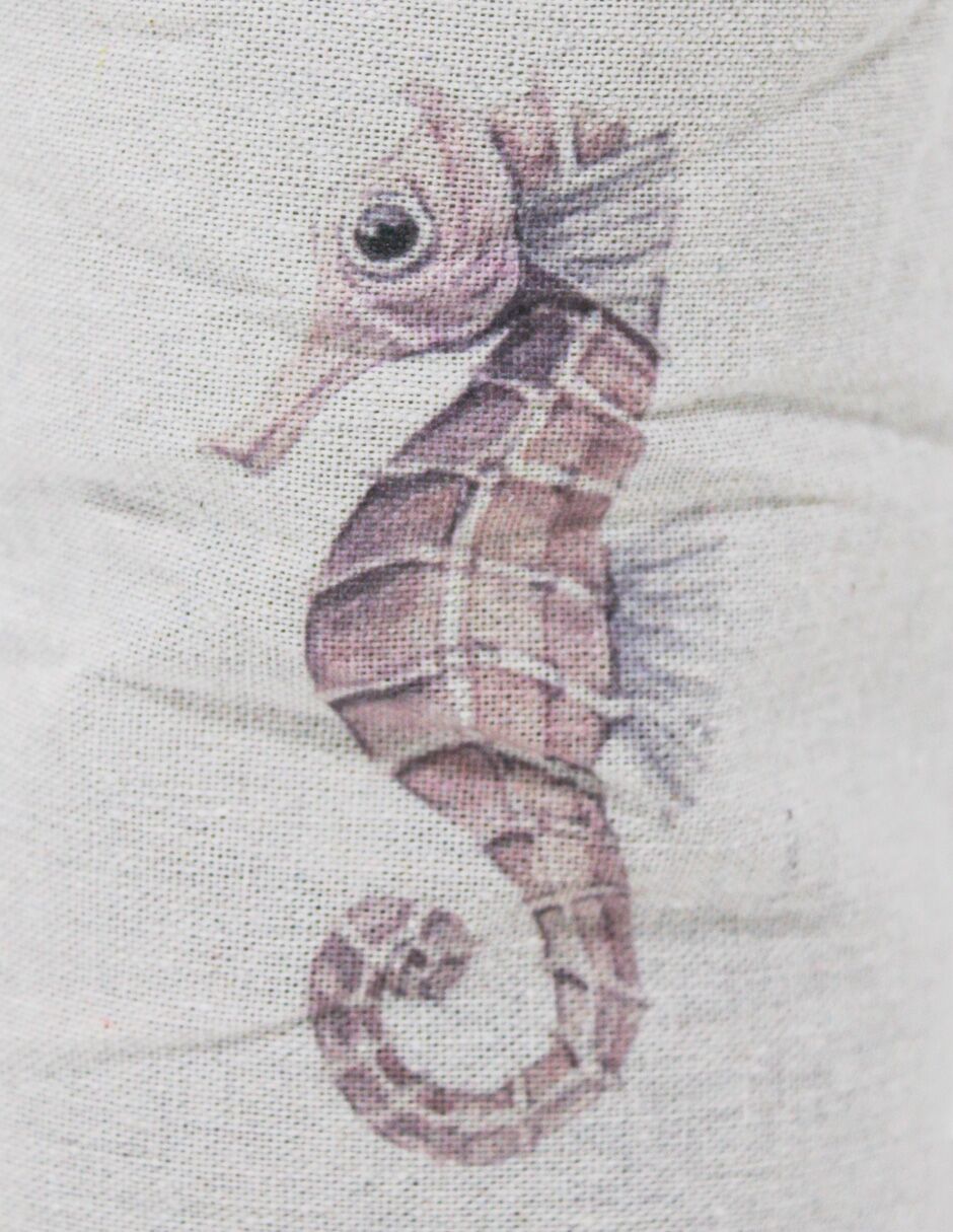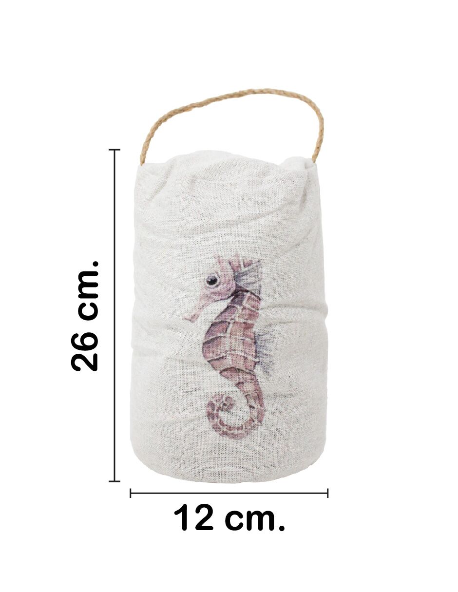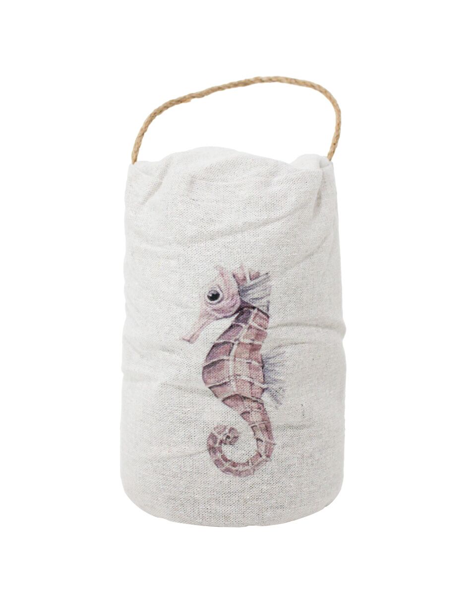 Tope de puerta diseño costal estampado caballito marino de 12x12x26cm