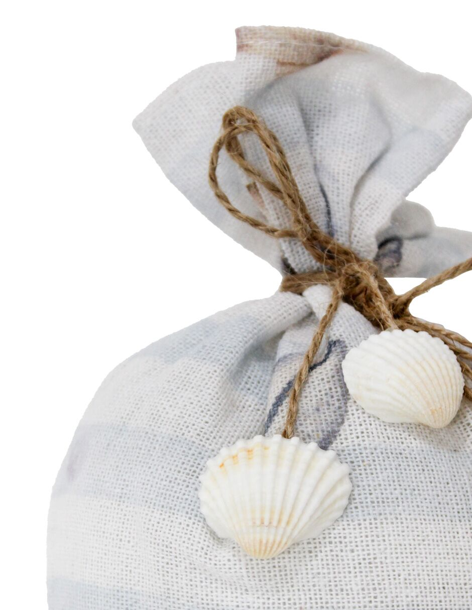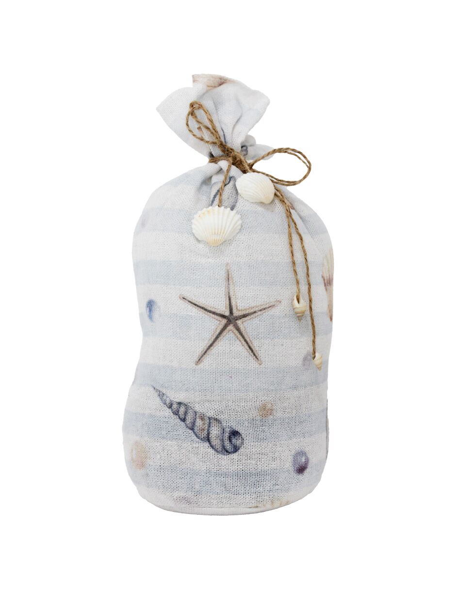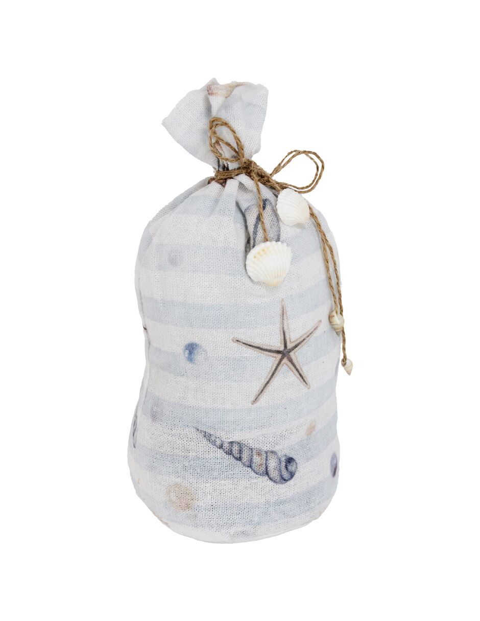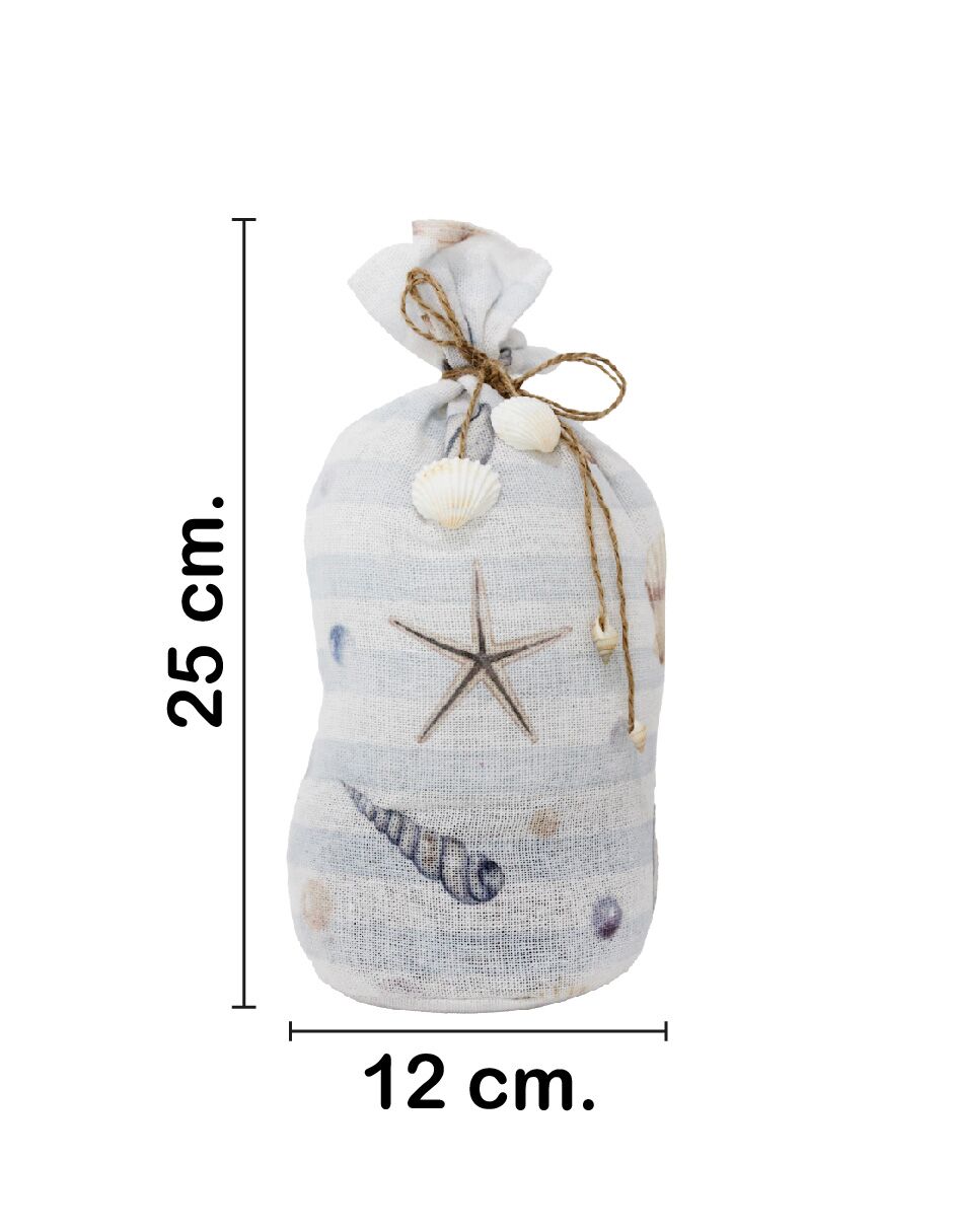Tope de puerta diseño costal estampado conchas marinas y cauris de 12x12x25cm