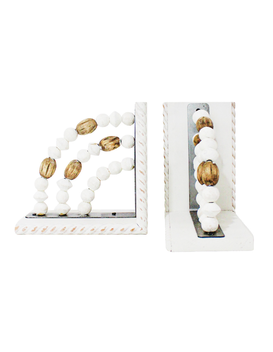 Un funcional juego de sujeta libros de madera con detalles de metal. Su diseño combina un estilo rústico y moderno, perfecto para organizar tus libros, aportando un toque de calidez y orden a tu escritorio. Material: madera y metal. Medidas: 1 x 10.2 x 17cm.
