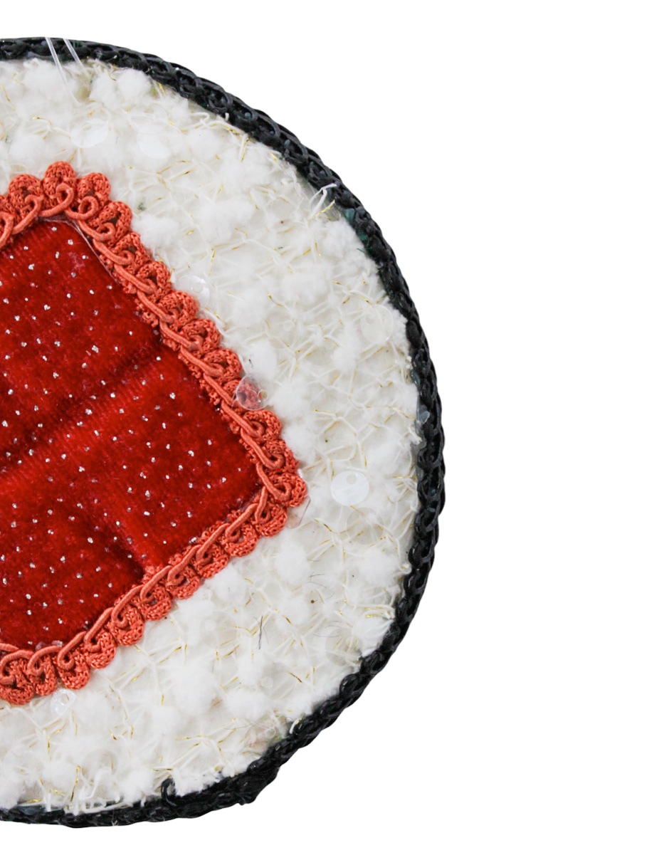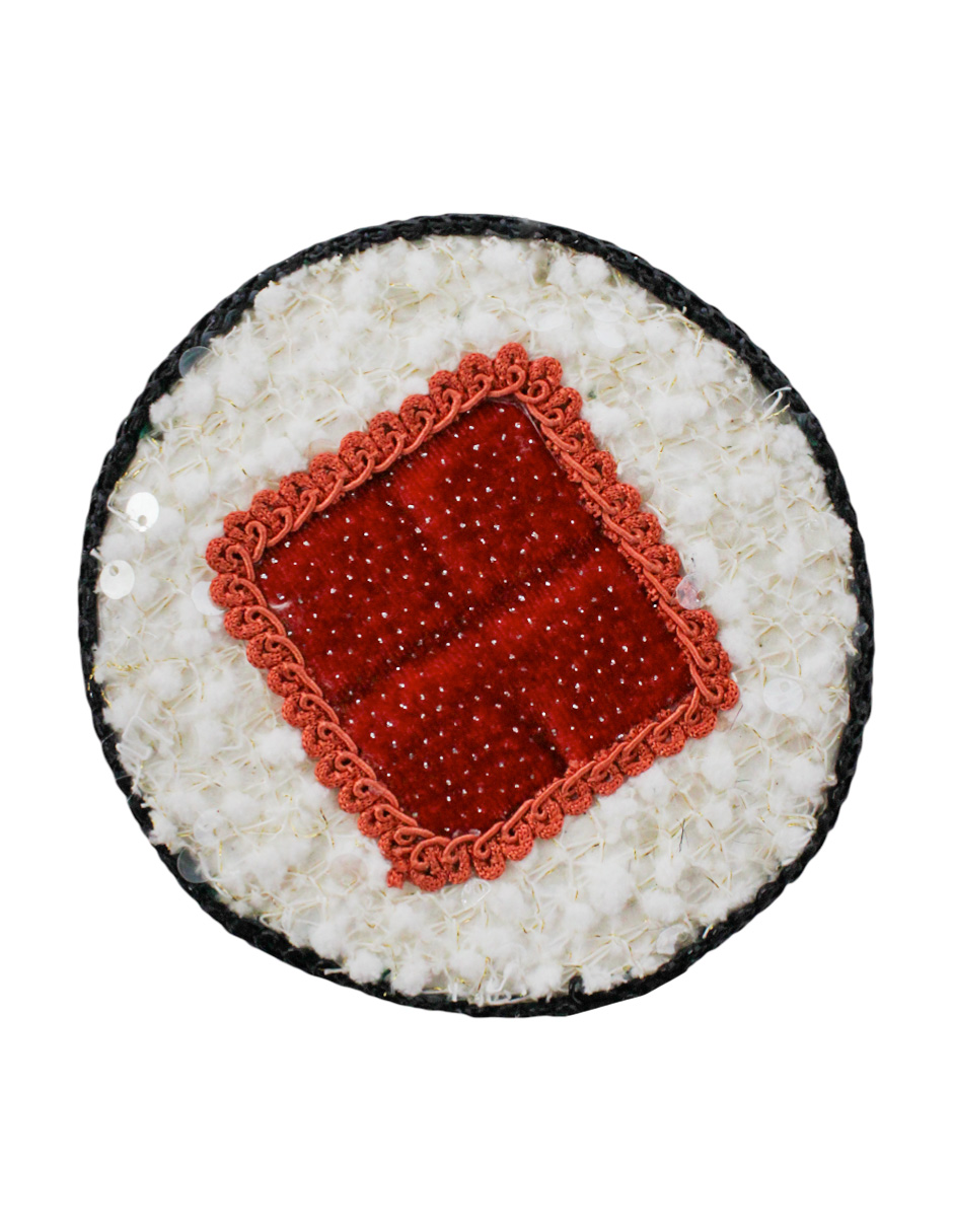 Aporta un toque de modernidad a tu hogar o negocio con este sushi decorativo. Su original relleno naranja te hará sentir la sofisticación y la vitalidad. Medidas: 10x10x8 cm.