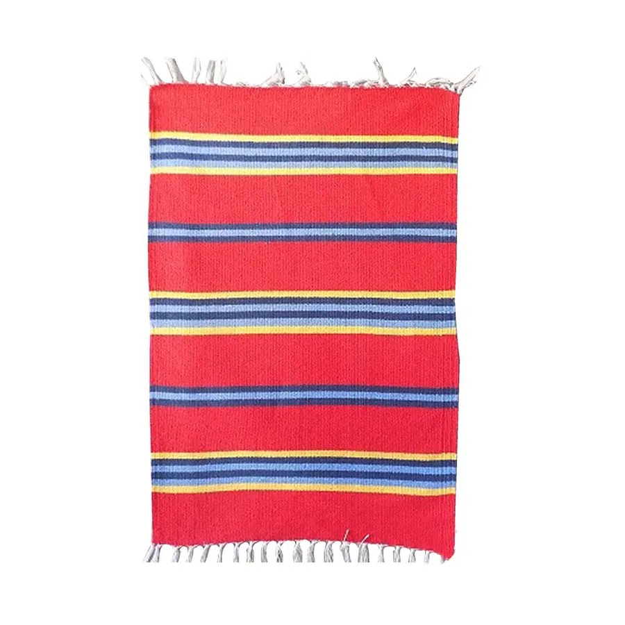 Tapete textil rojo con líneas en tonos azules de 60x90cm