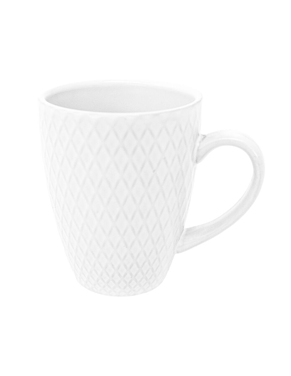 La Taza Mate Relieve de Rombos es la pieza maestra para quien busca sobriedad, texturas contemporáneas y una presencia visual limpia en sus momentos de descanso o trabajo. Este objeto ofrece una sofisticación minimalista incomparable para cualquier escritorio de oficina, mesa de desayuno o rincón de lectura en tu espacio cotidiano. Su sola presencia ayuda a elevar la experiencia de tus bebidas favoritas de manera inmediata. Lo logra mediante su diseño detallado con un patrón geométrico de rombos grabados en toda la superficie y un acabado mate en blanco puro, lo que evoca la pureza del diseño nórdico en la categoría de Liquidación.