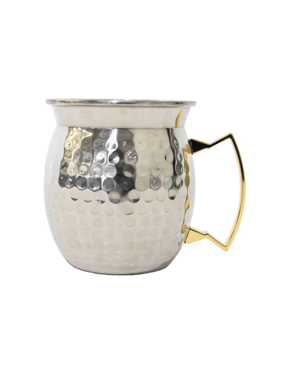 Este majestuoso tarro irradia lujo, diseño artesanal y una elegancia única. Su acabado martillado le otorga una rica textura, mientras que el asa dorada añade un toque de opulencia. Fabricado en acero de alta calidad, es perfecto para servir el auténtico Moscow Mule con un brillo incomparable. Material: Acero. Capacidad: 550 ml. Medidas: 9.8 x 8.8 x 13 cm.