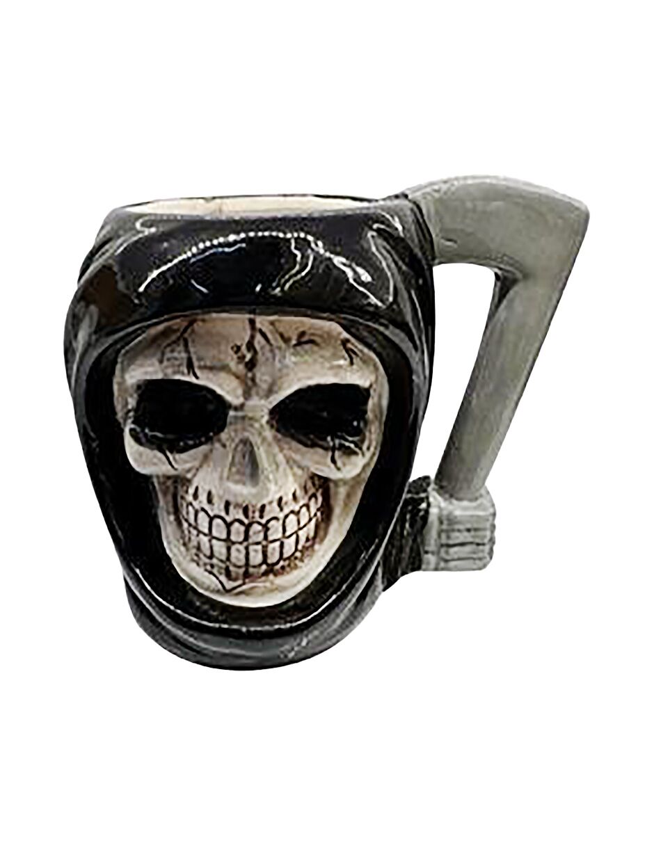Un toque de misterio y estilo para tu bebida. Esta taza de cerámica es la pieza perfecta para añadir un aire de originalidad y encanto a tu hogar. Con un diseño detallado que muestra un cráneo con capucha y un asa con forma de guadaña, su figura crea un ambiente lleno de vida, ideal para una mesa de café o cualquier rincón temático, y sorprenderá a tus invitados con su diseño único.