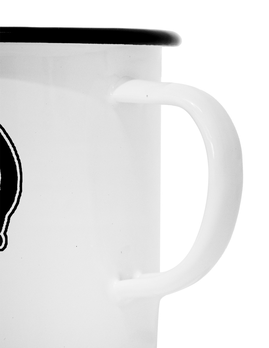 Disfruta tu bebida con un toque vintage. Esta taza de peltre blanca con estampado de cafetera y texto “COFFE” es perfecta para tu cocina. Su diseño te hará sentir la calidez y la comodidad en tu hogar. Mide 11x11x10cm.