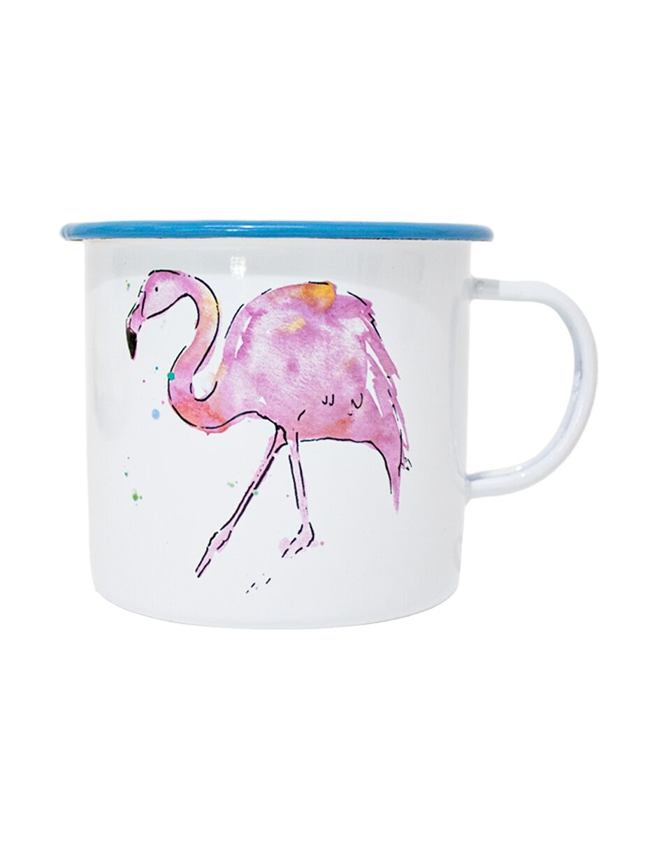 Disfruta tu bebida con un toque tropical. Esta taza de peltre blanca con diseño de flamingo es perfecta para tu cocina. Su diseño te hará sentir la alegría y la diversión del verano. Mide 9x9x8cm.