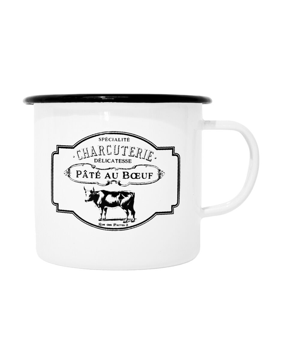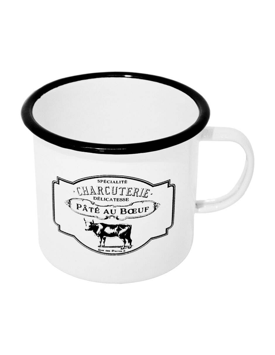 Disfruta tu bebida con un toque rústico. Esta taza de peltre blanca con estampado de vaca y diseño francés es perfecta para tu cocina. Su diseño te hará sentir la calidez y la autenticidad de la vida en la granja. Mide 11x11x10cm.