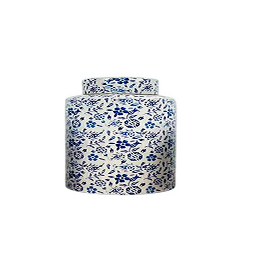 Tibor de cerámica estampado flores azul con blanco de 17x17x22cm