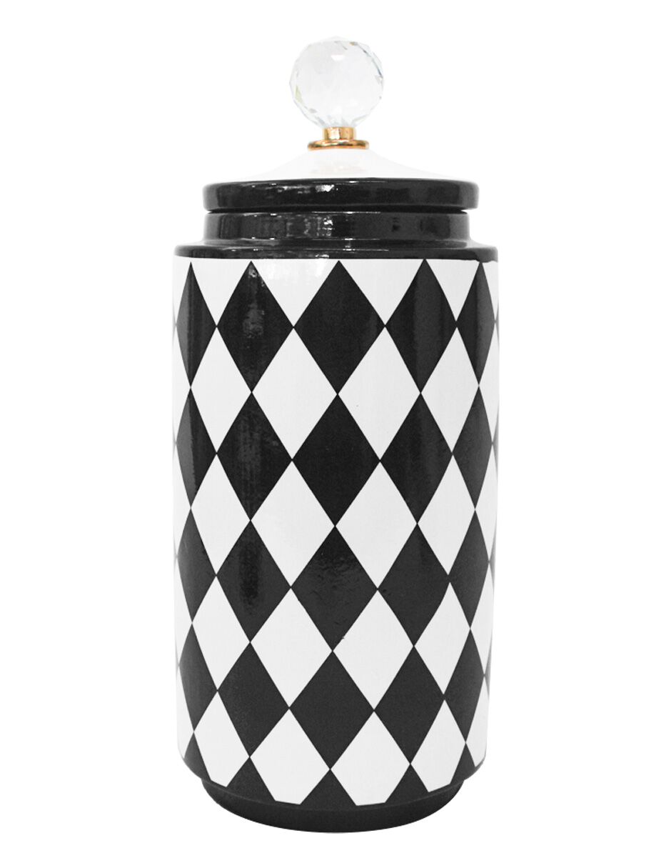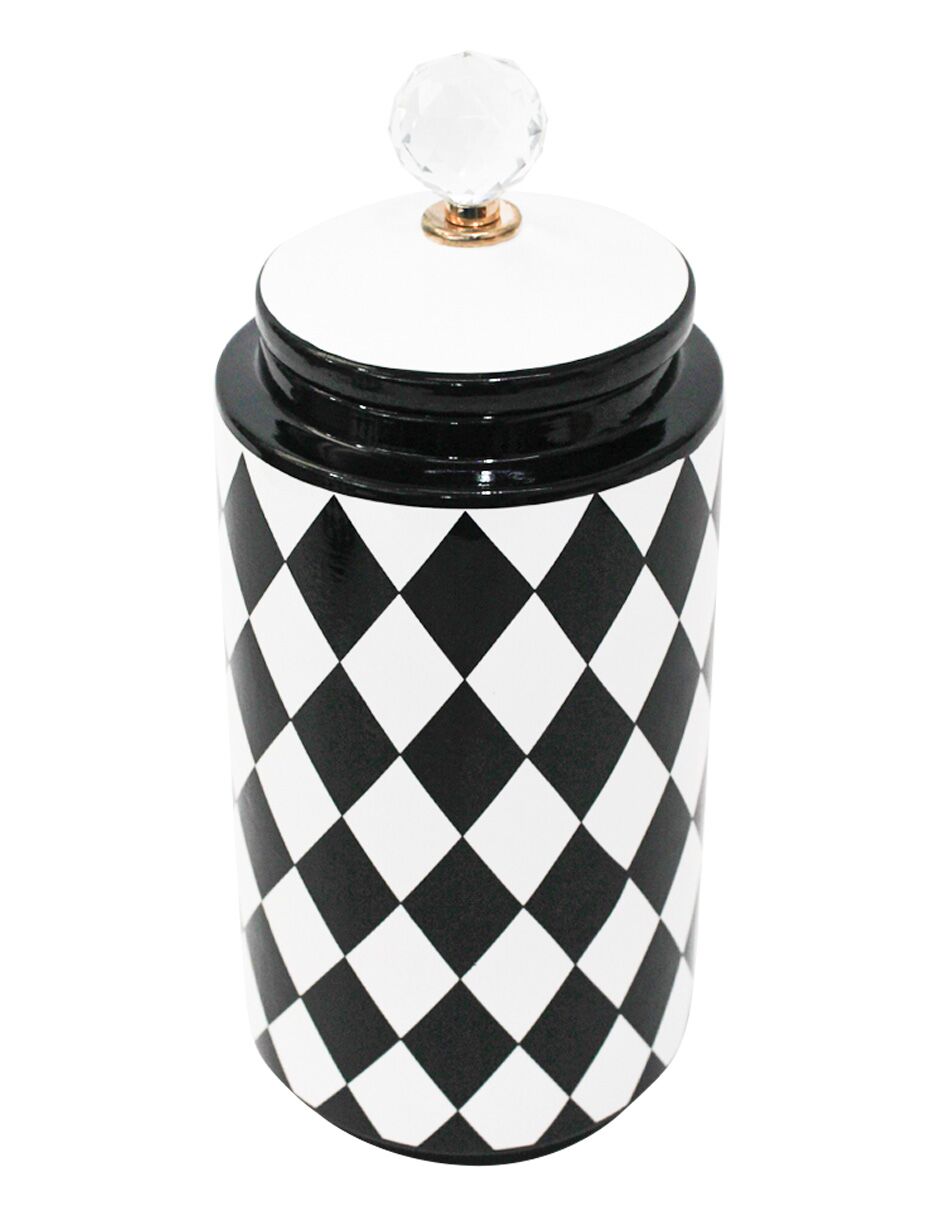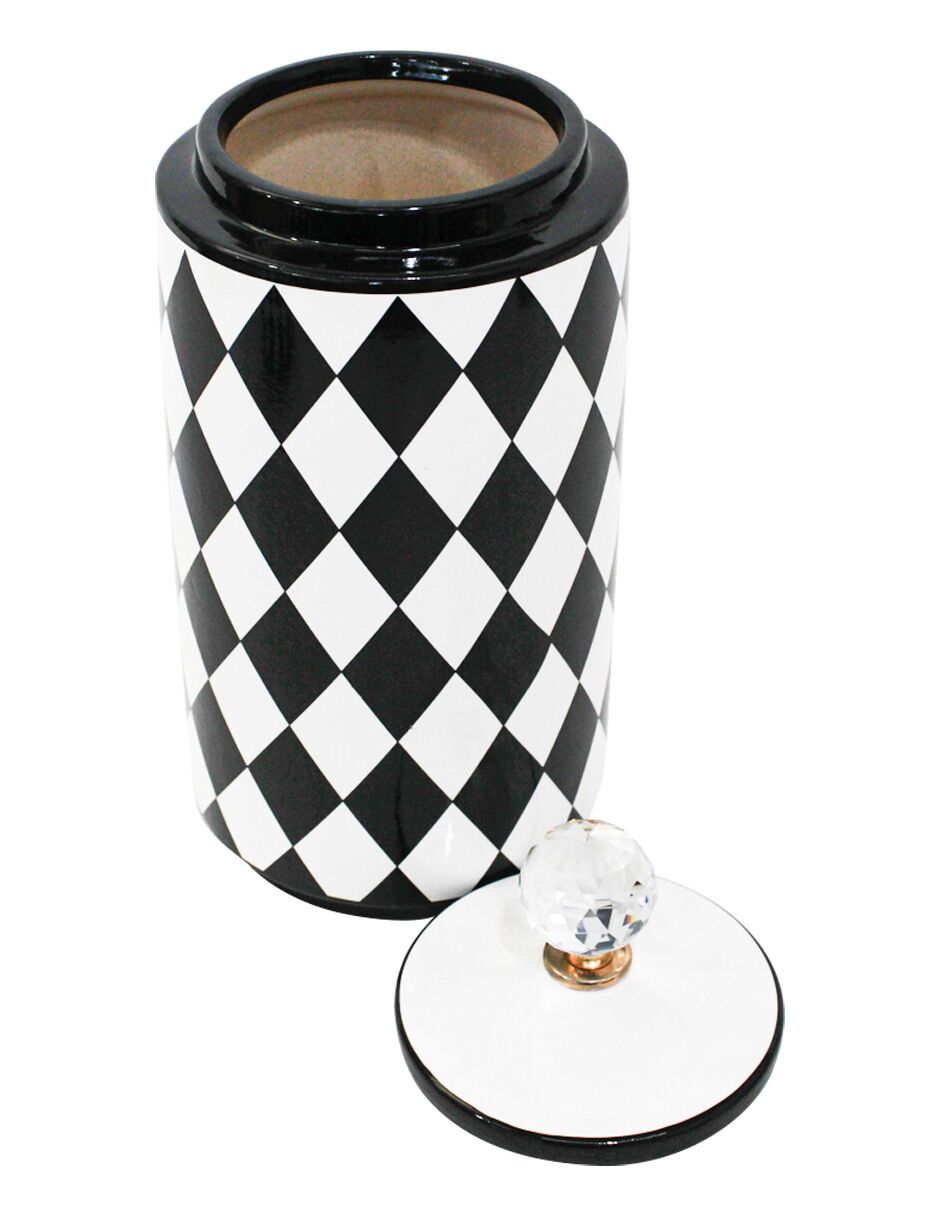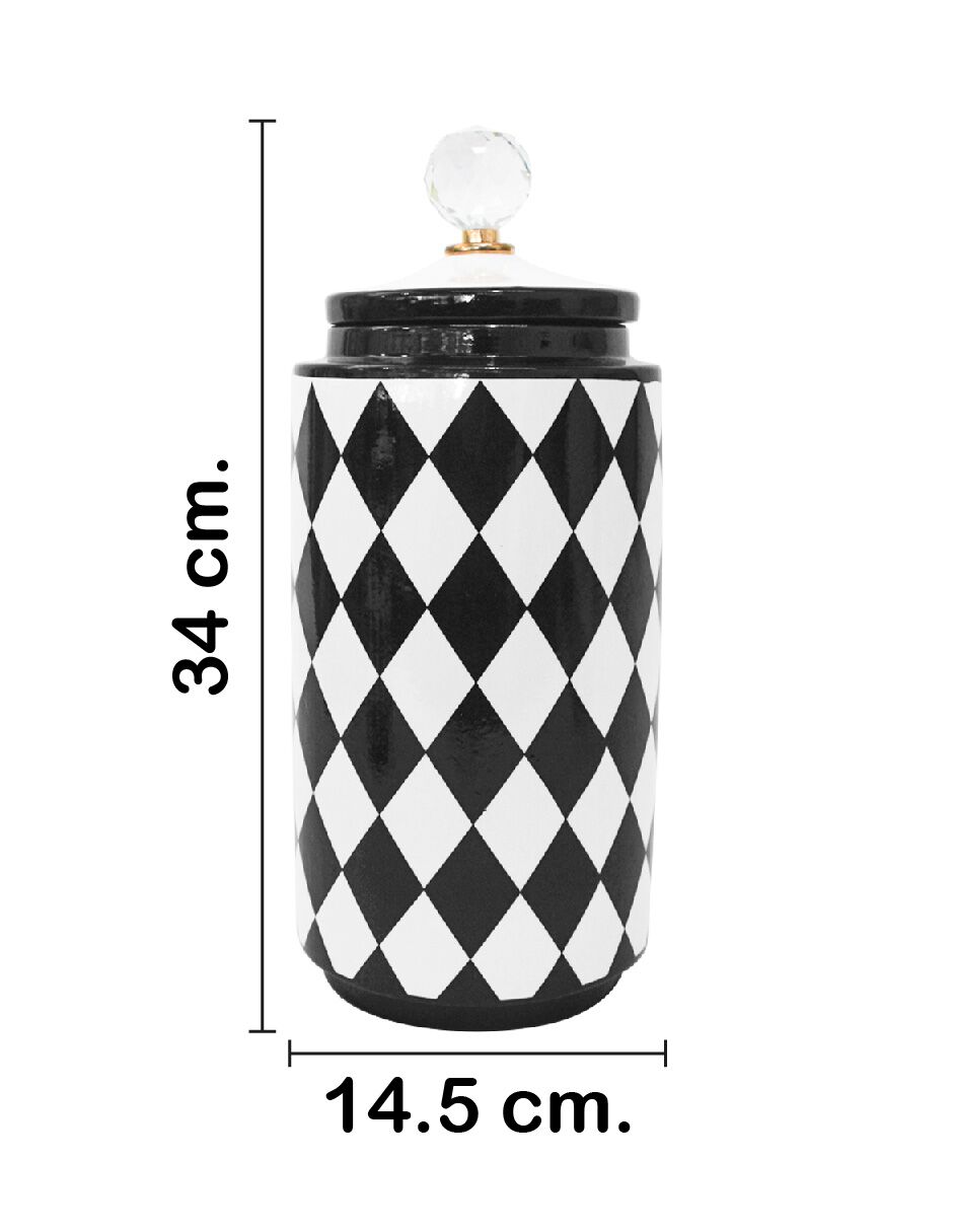 Tibor de cerámica negro con blanco diseño rombos 13x13x33.5cm