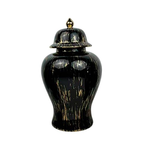Tibor de cerámica negro con pinceladas doradas de 17.5×17.5x31cm