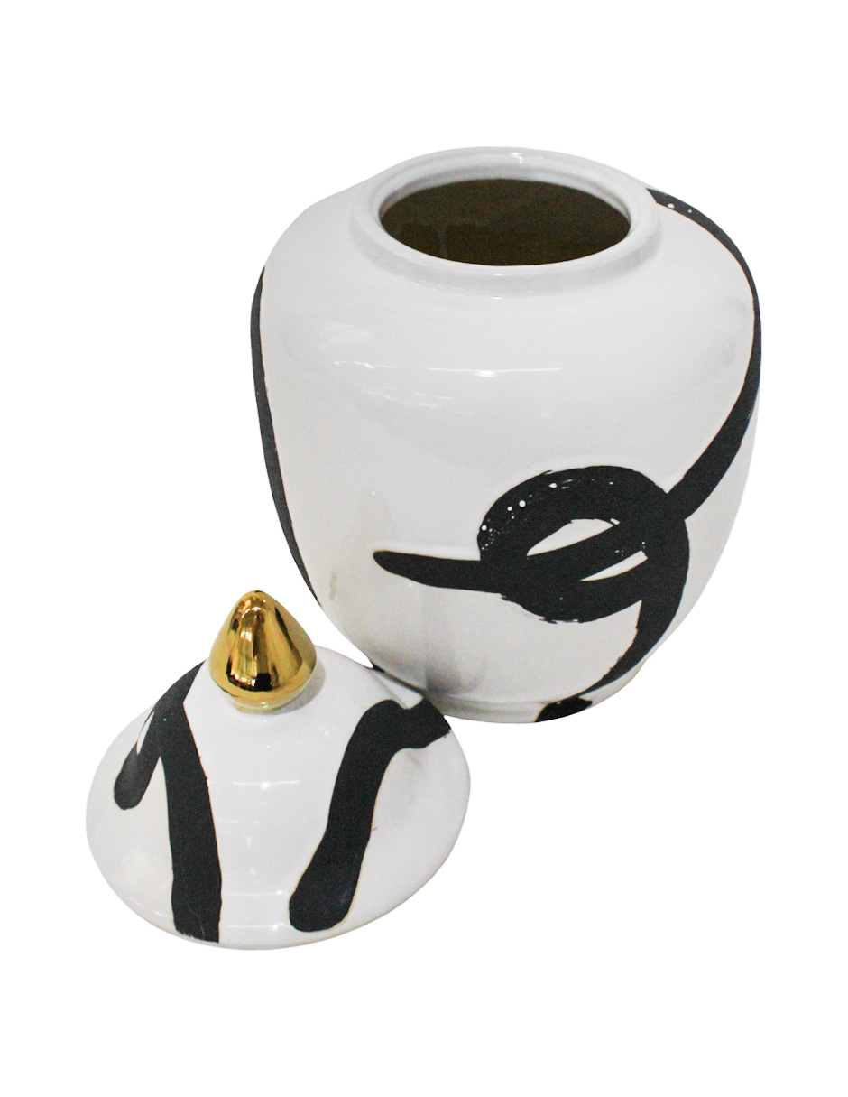 El Tibor Negro Pincelado Abstracto es más que una pieza de decoración; es una declaración de arte y audacia. No es solo un contenedor, sino una obra escultórica que infunde misterio y sofisticación en cualquier espacio. Siente la energía de la expresión artística gracias a su patrón de pinceladas que rompen con lo tradicional, convirtiéndolo en un objeto de deseo inmediato. Este Tibor Negro Pincelado Abstracto es la cúspide del diseño moderno, combinando líneas audaces con la nobleza de la cerámica.