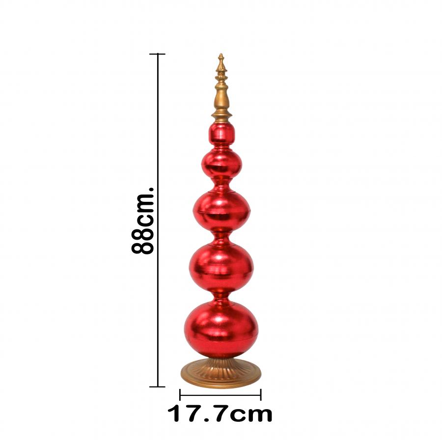 Decoración de metal en un festivo color rojo con un original diseño de esferas apiladas y una base con punta dorada. Esta pieza es ideal para quienes buscan una decoración moderna y llena de estilo. Su diseño único evoca una sensación de diversión y opulencia, perfecta para crear un ambiente lleno de brillo y magia. Material: metal. Medidas: 17x17x88cm.