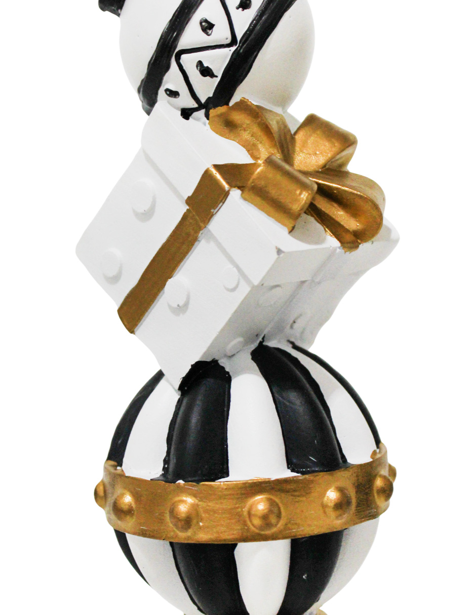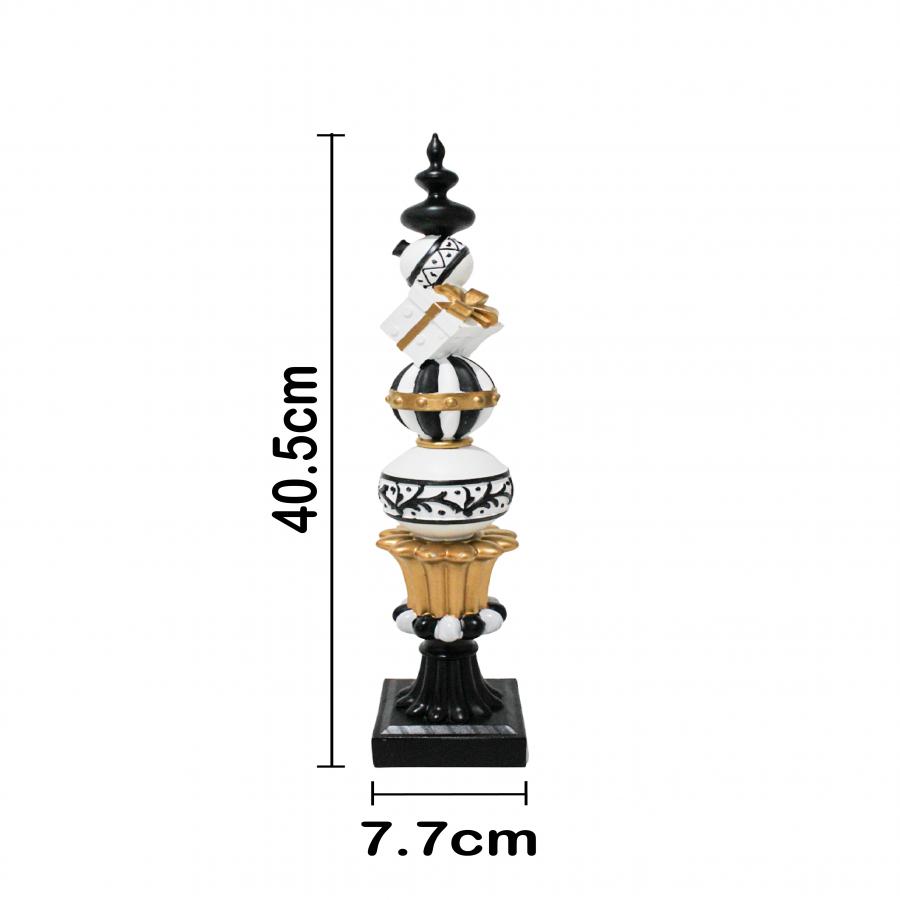 Torre de esferas con regalo de poliresina negro con blanco y dorado de 8x8x41cm