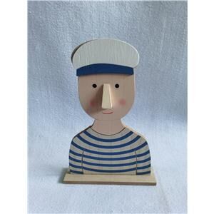 Torso de marinero de madera con camisa a rayas azules de 21x31x5cm