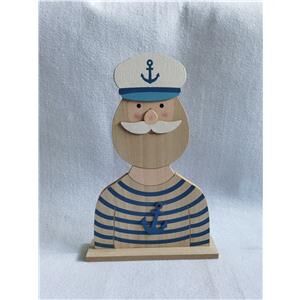 Torso de marinero de madera con camisa a rayas azules de 28x41x6cm
