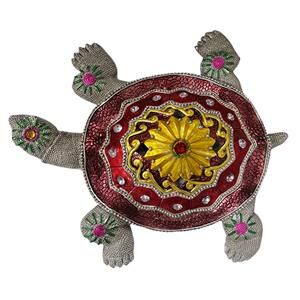 Tortuga para colgar con pedrería roja con amarillo de 25 cm
