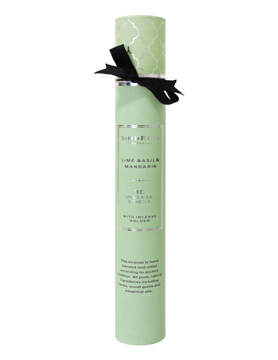 Tubo con 30 varas de incienso con quemador y fragancia de lima albahaca y mandrín de 4.5x28x4.5cm