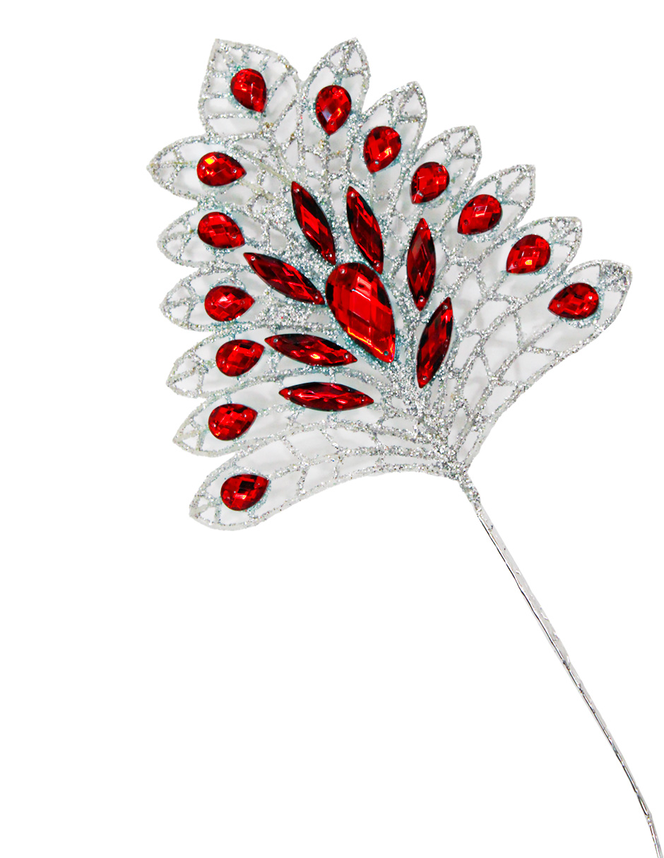 Una elegante vara diamantada con pedrería roja. Es ideal para dar un toque de brillo y sofisticación a tus arreglos florales, llenando cualquier espacio de un estilo único y festivo. Material: plástico. Medidas: 81 cm.