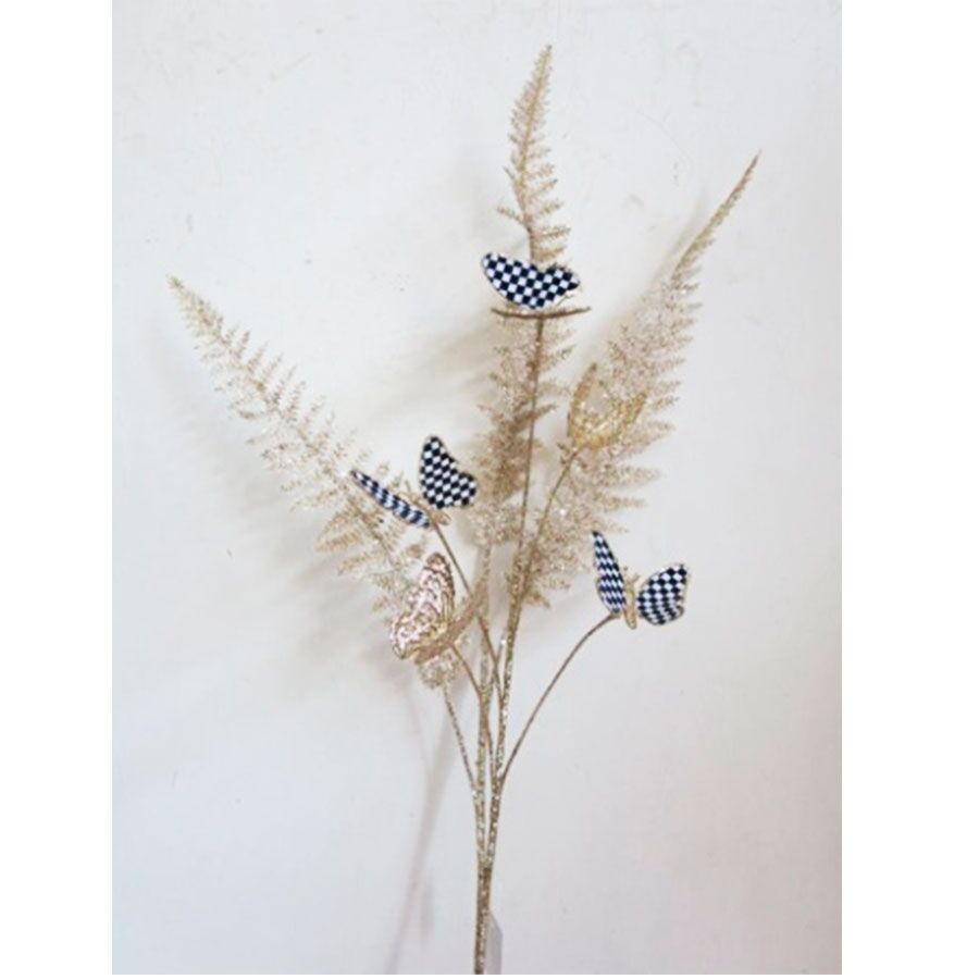 Vara de follaje diamantado con mariposas a cuadros de 76