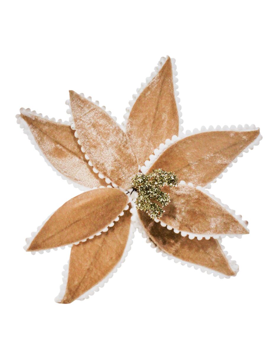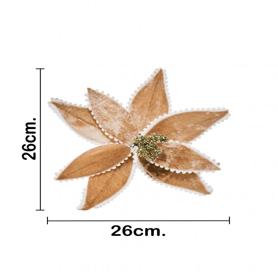 Vara de Nochebuena en un delicado color beige con una orilla blanca. Es perfecta para añadir un toque de pureza y sofisticación a tus arreglos florales o coronas navideñas. Medidas: 30x21x0.1cm.