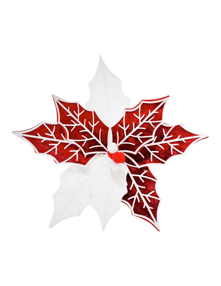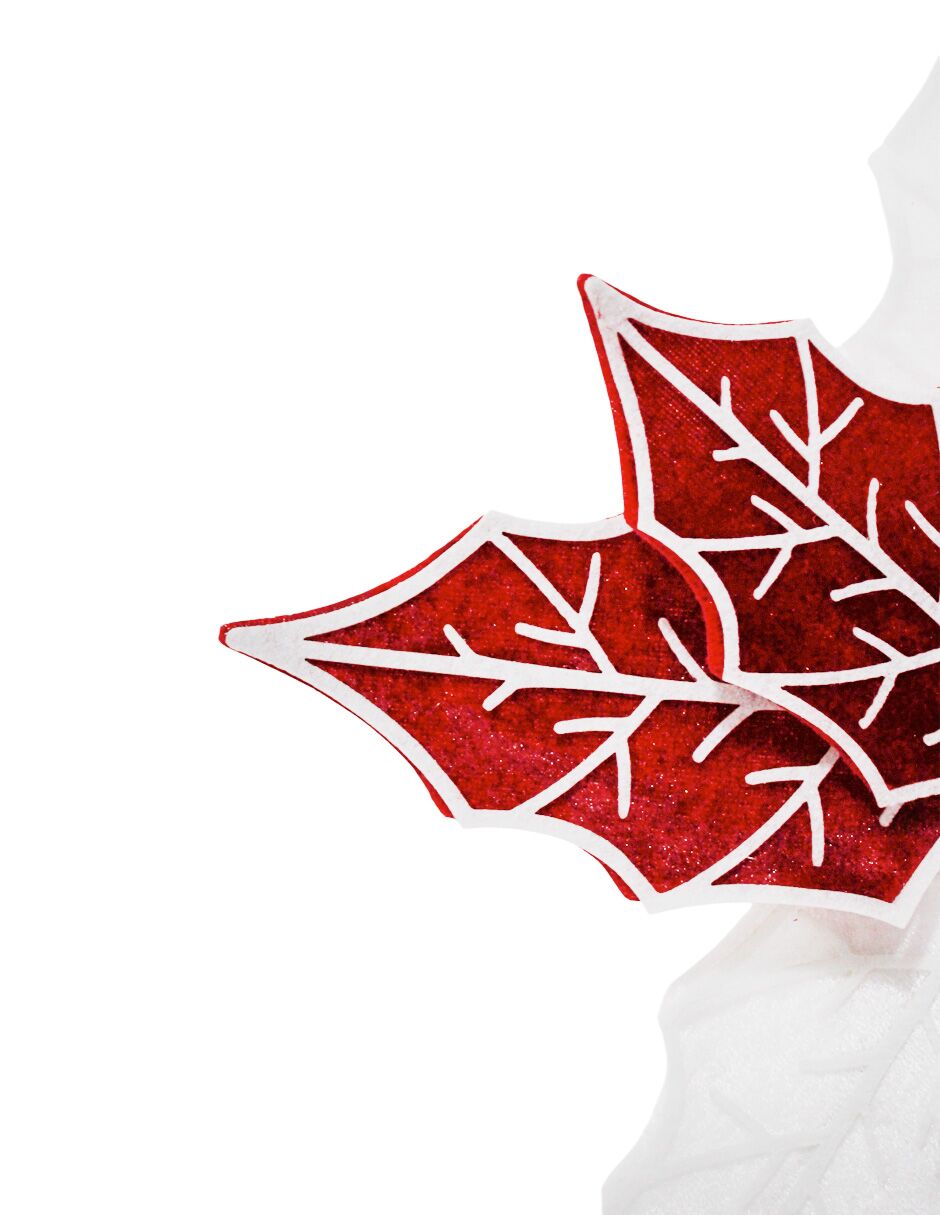 Vara de Nochebuena de terciopelo en una clásica combinación de colores blanco y rojo. Es perfecta para añadir un toque de tradición y calidez a tus arreglos florales o coronas navideñas. Medidas: 28x21x0.1cm.