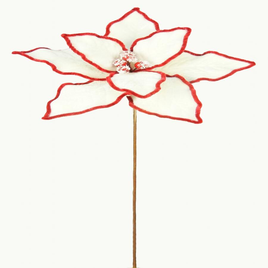 Vara de nochebuena de terciopelo blanco con orilla roja de 20.32×20.32×55.88cm