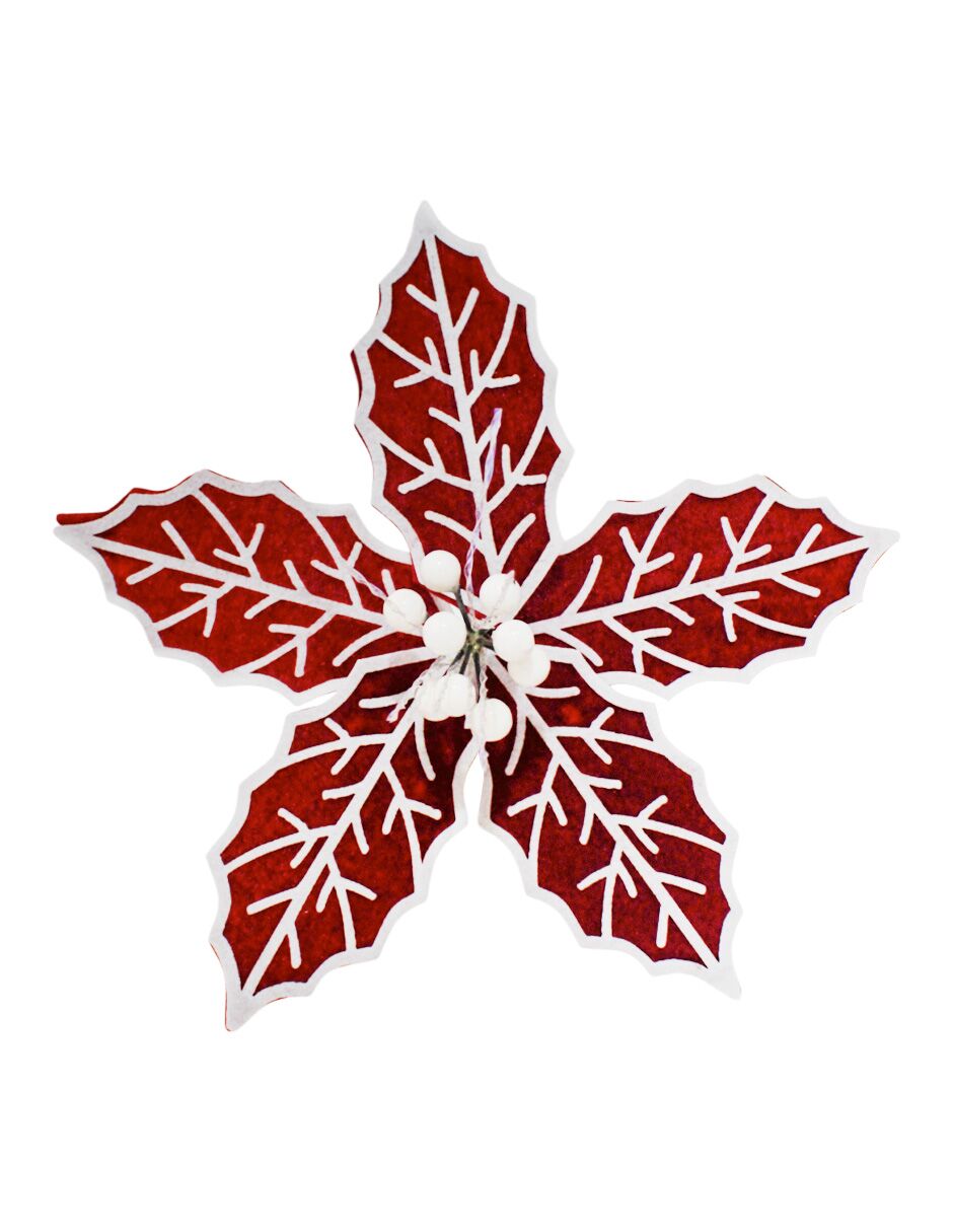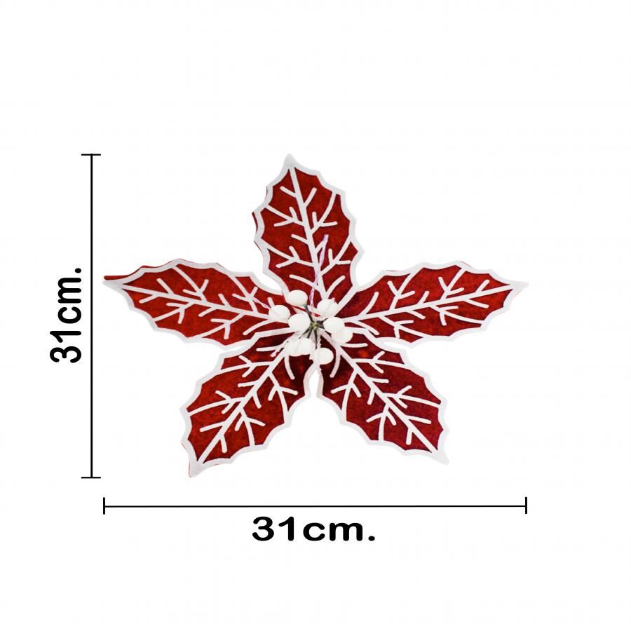Vara de Nochebuena en un vibrante color rojo con una elegante orilla blanca. Es perfecta para añadir un toque de contraste y sofisticación a tus arreglos florales o coronas navideñas. Medidas: 30x20x0.1cm.