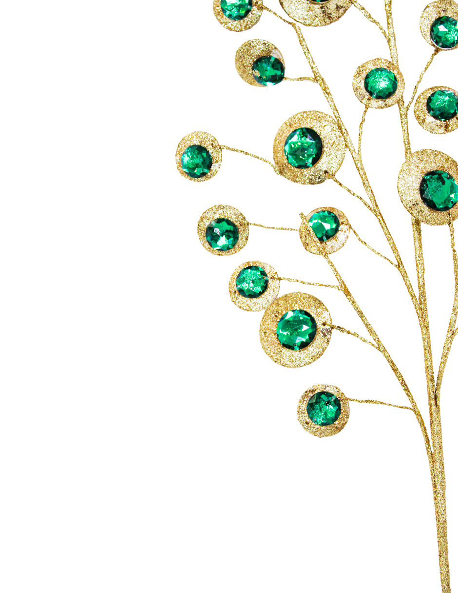 Una lujosa vara dorada diamantada con pedrería verde. Es ideal para dar un toque de brillo y sofisticación a tus arreglos florales y decoraciones, llenando cualquier espacio de un estilo único y festivo. Material: plástico. Medidas: 81 cm.