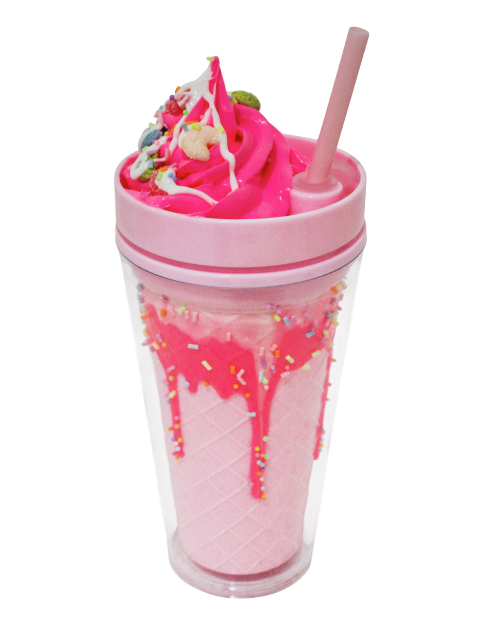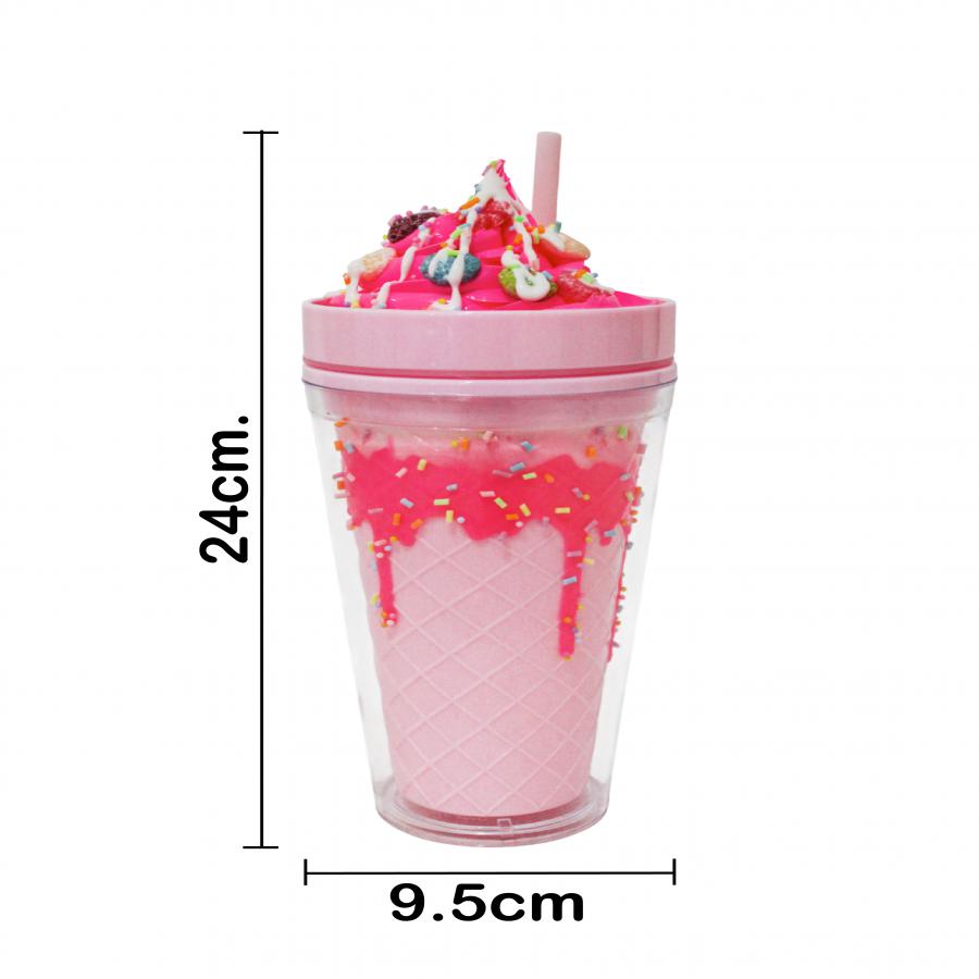Vaso de acrilico rosa con popote de 480ML de 9.5×9.5×22.5cm