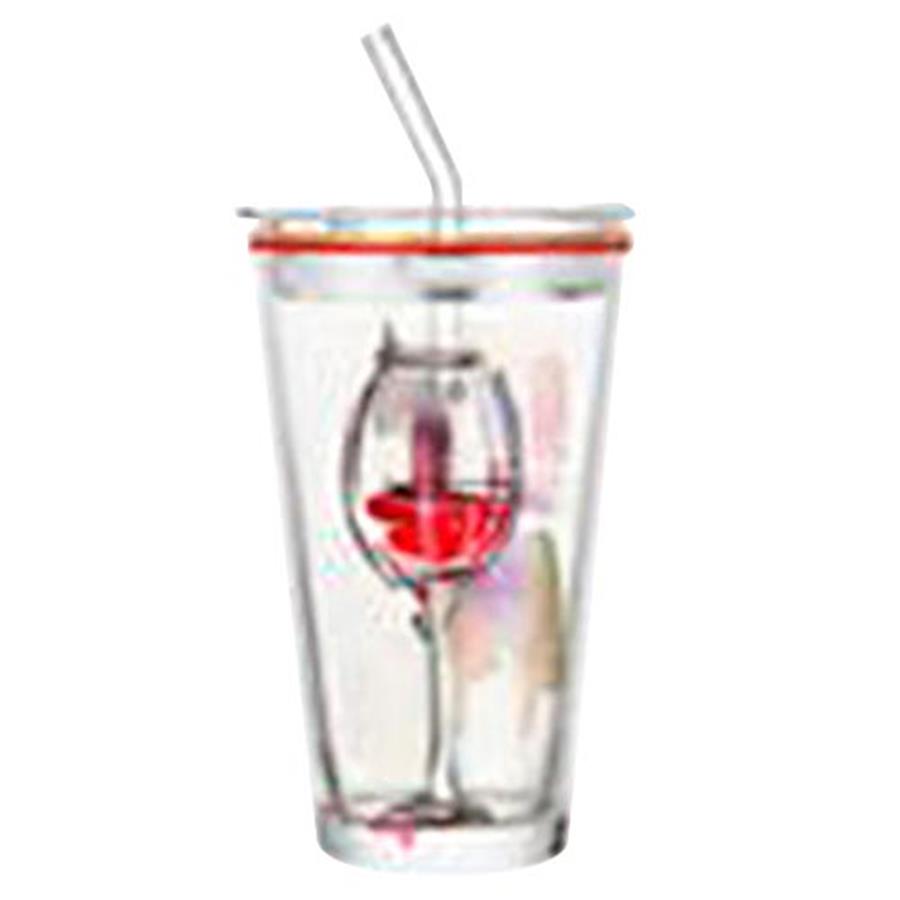 Vaso con Tapa y Popote Diseño Copa de Vino