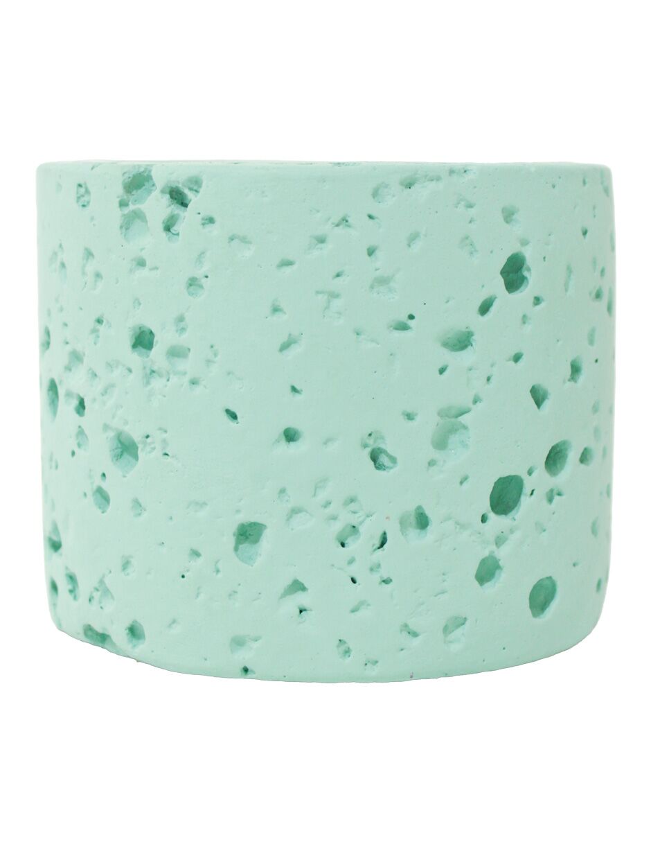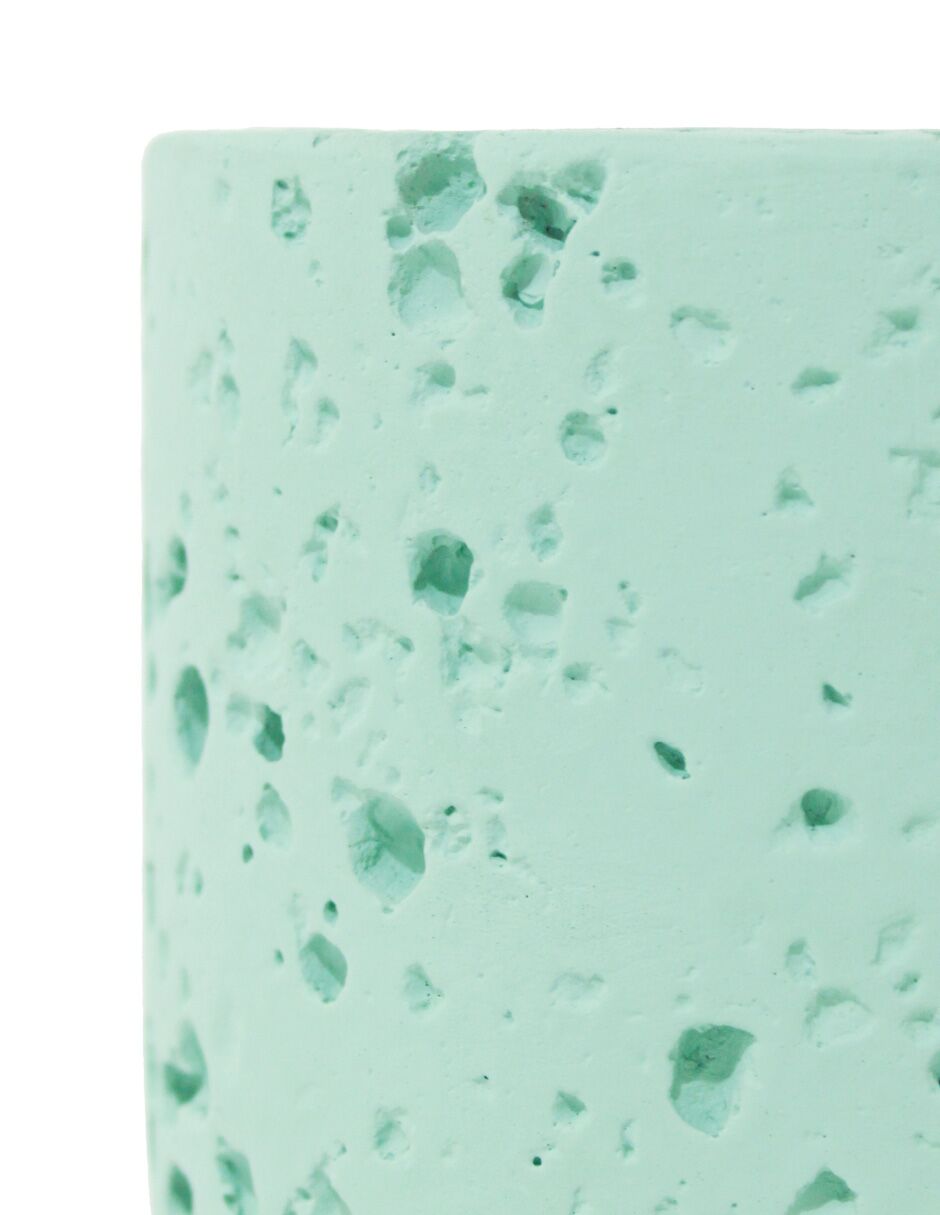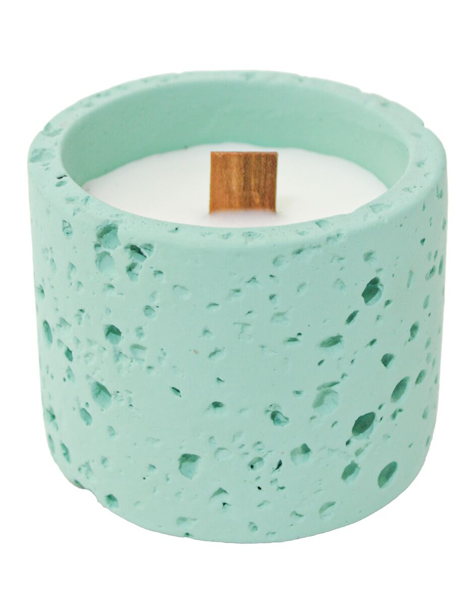 Vela cilíndrica con base de cemento verde menta de 8.5×8.5×7.2cm