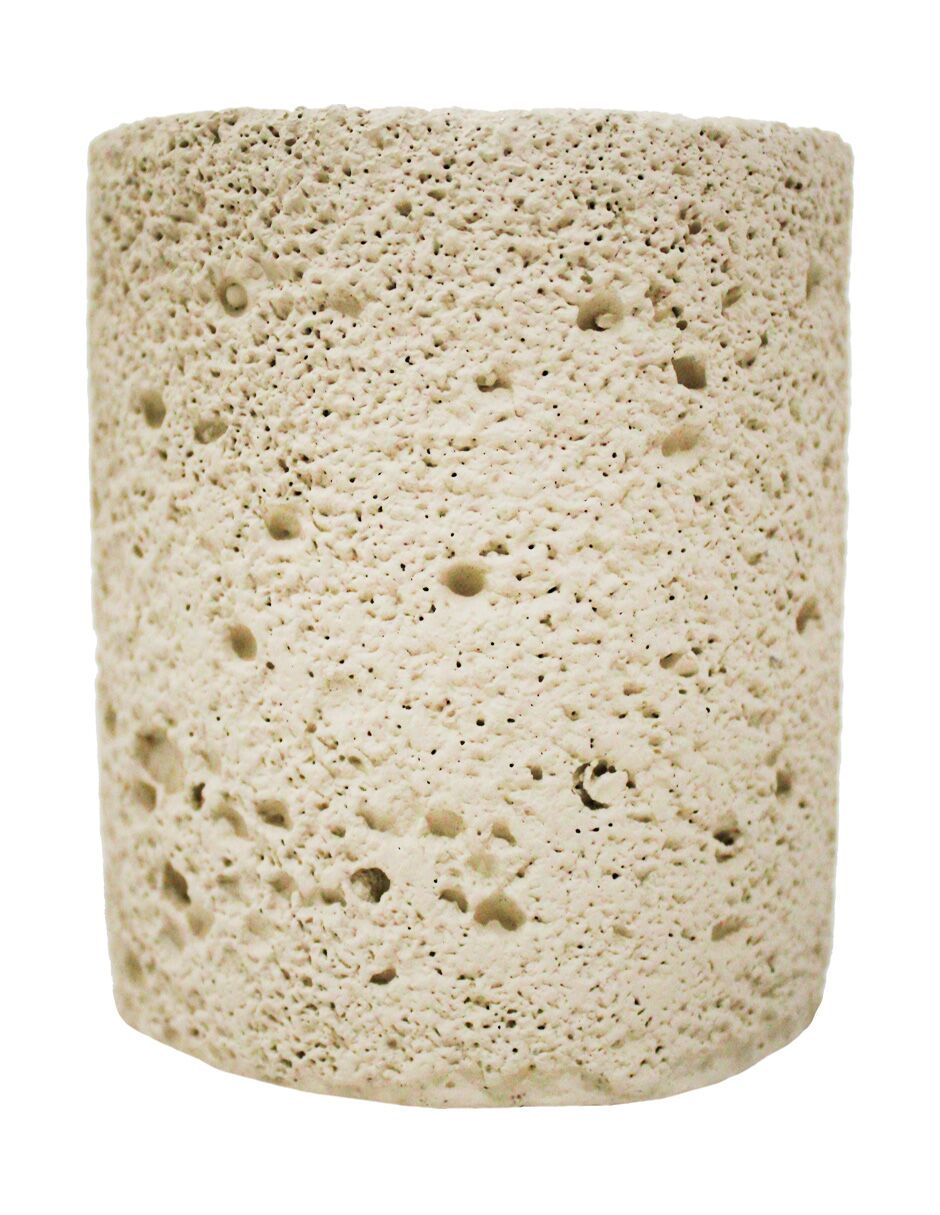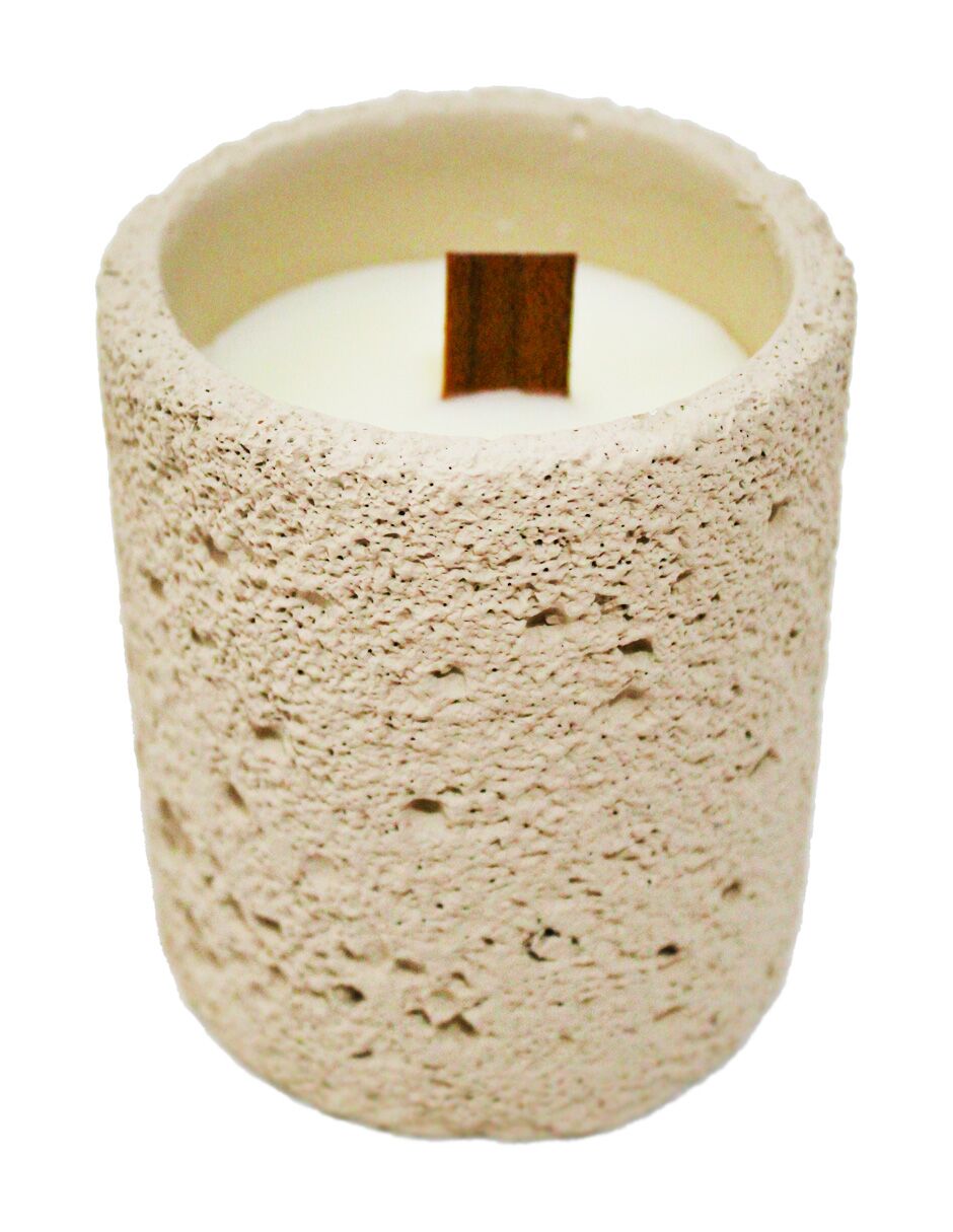 Vela con base de resina cilindrica beige de 8x8x9.5cm