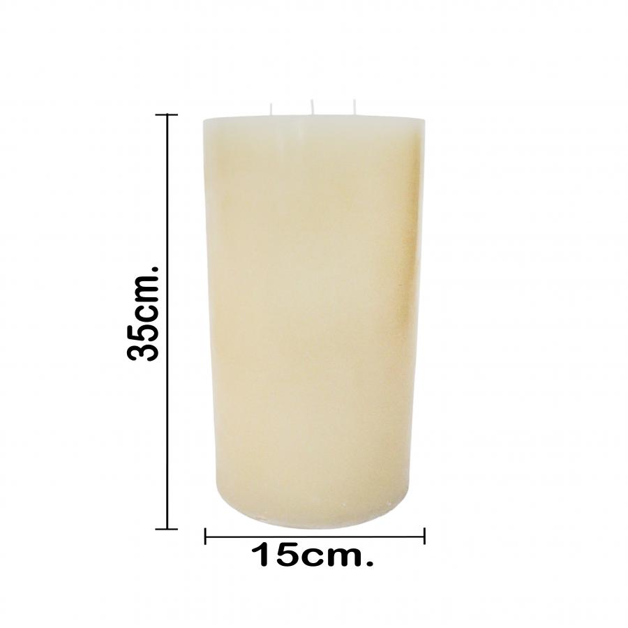 Un toque de calidez y elegancia para tu hogar. Esta vela de marfil con 3 pabilos es la pieza perfecta para crear un ambiente relajante y sofisticado. Con sus 4200g de peso y medidas de 15x35cm, su diseño robusto y atemporal evoca la serenidad, llenando cualquier espacio con un delicado resplandor.