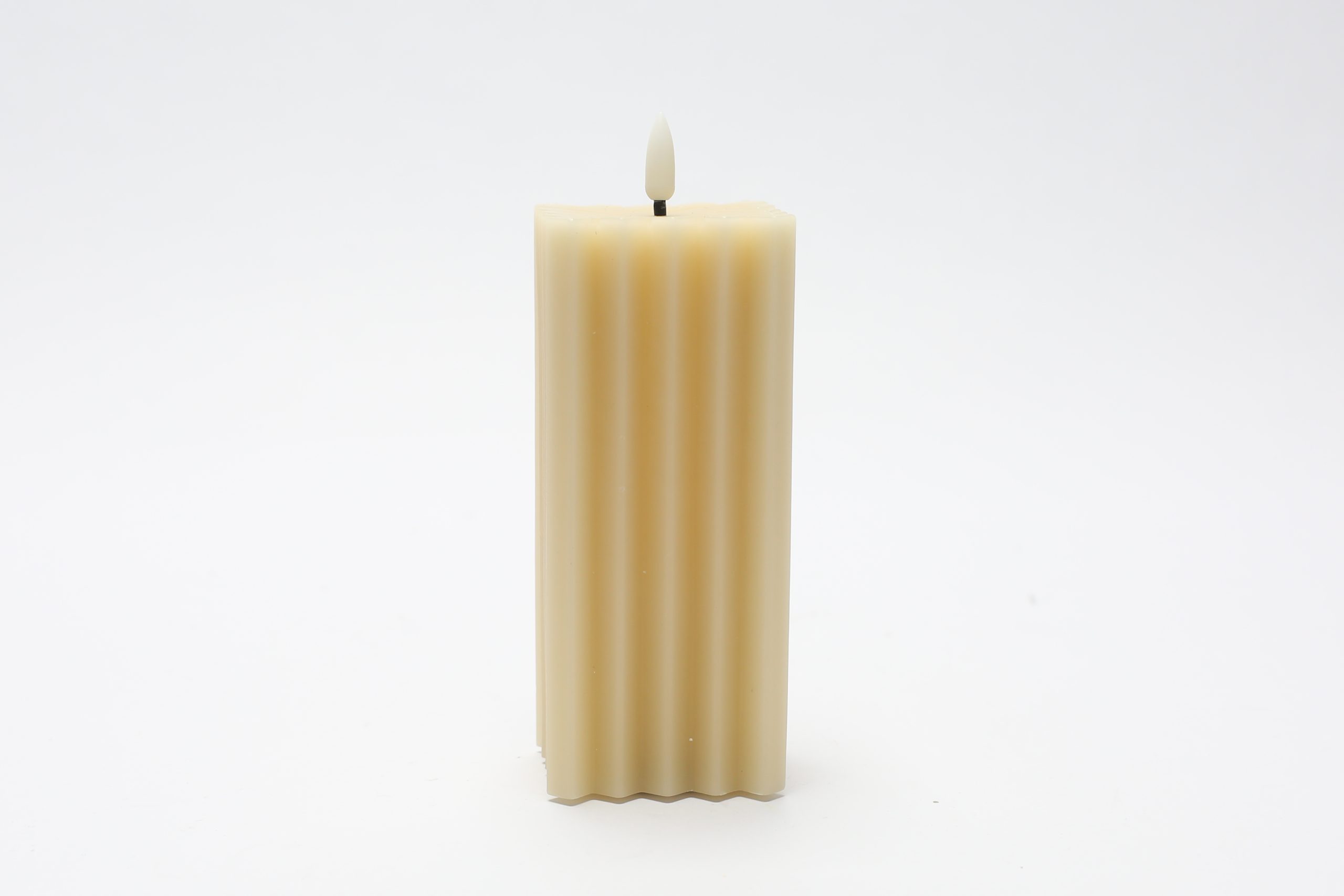 Vela de cera beige con luz LED diseño columna de 5.5×5.5×15 cm (Usa 2 baterías AA)