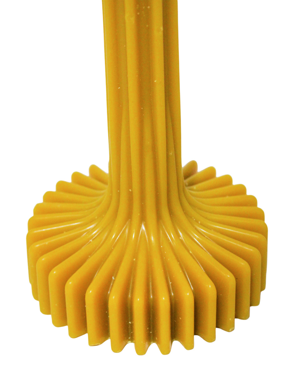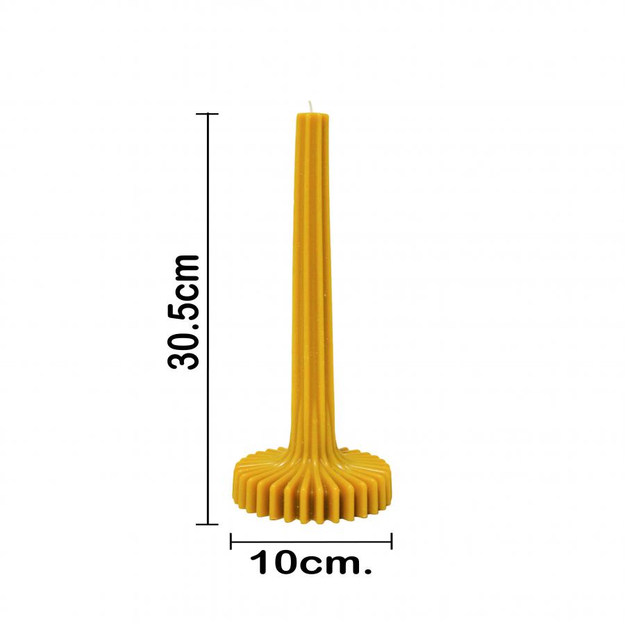 Un toque de calidez y textura para tu hogar. Esta vela amarilla mostaza con una elegante base corrugada es la pieza perfecta para crear un ambiente moderno y acogedor. Con sus medidas de 10x30cm, su diseño único evoca la serenidad, llenando cualquier espacio con un delicado resplandor y un toque de estilo.