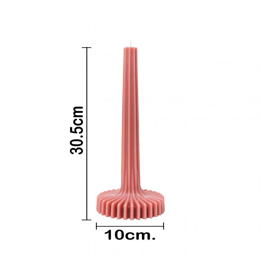 Un toque de calidez y textura para tu hogar. Esta vela rosa melocotón con una elegante base corrugada es la pieza perfecta para crear un ambiente moderno y acogedor. Con sus medidas de 10x30cm, su diseño único evoca la serenidad, llenando cualquier espacio con un delicado resplandor y un toque de estilo.