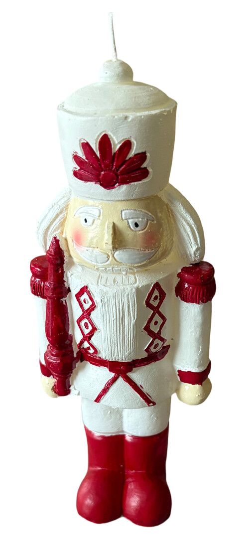 Ilumina tu hogar con la magia clásica y el encanto sofisticado de esta cautivadora vela. Su diseño detallado de soldado Cascanueces en un elegante tono blanco evoca un espíritu festivo y tradicional, ideal para decorar mesas, repisas o centros de mesa durante la temporada. Inyecta calidez, distinción y el auténtico espíritu de la Navidad. Es la pieza perfecta para crear un ambiente único y memorable con un toque de sobriedad chic. Material: Cera. Medidas: 7.5 x 5 x 19 cm.