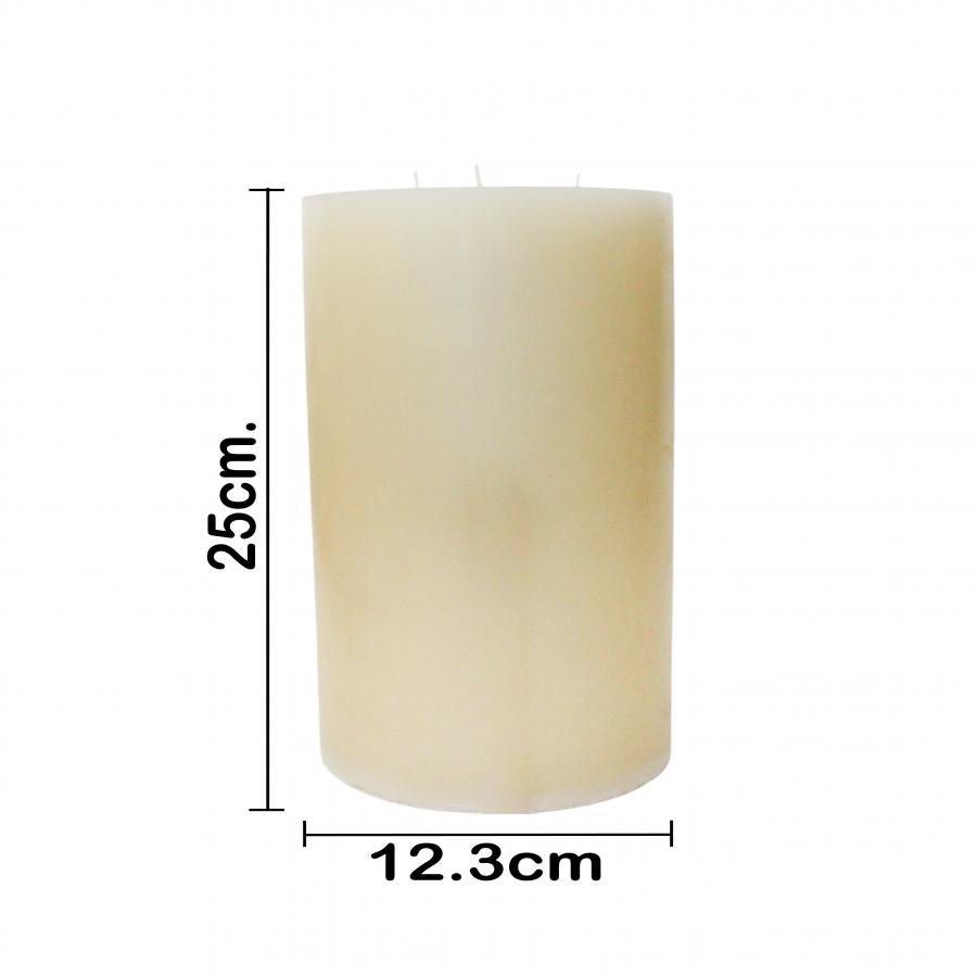Un toque de calidez y elegancia para tu hogar. Esta vela marfil con 3 pabilos es la pieza perfecta para crear un ambiente relajante y sofisticado. Con sus 1630g de peso y medidas de 12.5x20cm, su diseño robusto y atemporal evoca la serenidad, llenando cualquier espacio con un delicado resplandor.