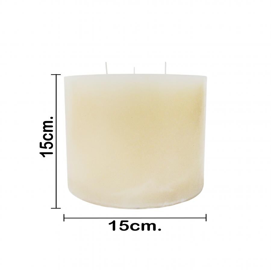Un toque de calidez y elegancia para tu hogar. Esta vela marfil con 3 pabilos es la pieza perfecta para crear un ambiente relajante y sofisticado. Con sus 1830g de peso y medidas de 15x15cm, su diseño robusto y atemporal evoca la serenidad, llenando cualquier espacio con un delicado resplandor.