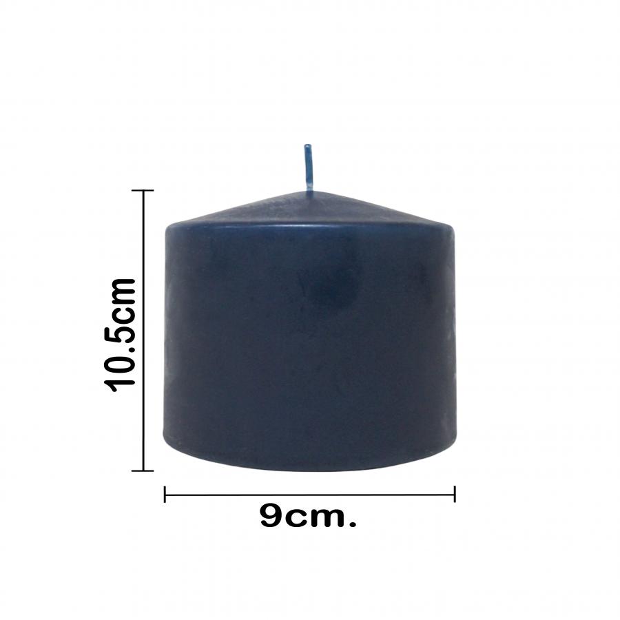 Un toque de calidez y estilo para tu hogar. Esta vela cilíndrica azul marino es la pieza perfecta para crear un ambiente relajante y acogedor. Con sus medidas de 9x10cm, su diseño clásico y atemporal evoca la serenidad, llenando cualquier espacio con un delicado resplandor.