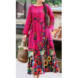 Vestido largo rosa intenso floreado de manga larga de 120x94x37x52cm