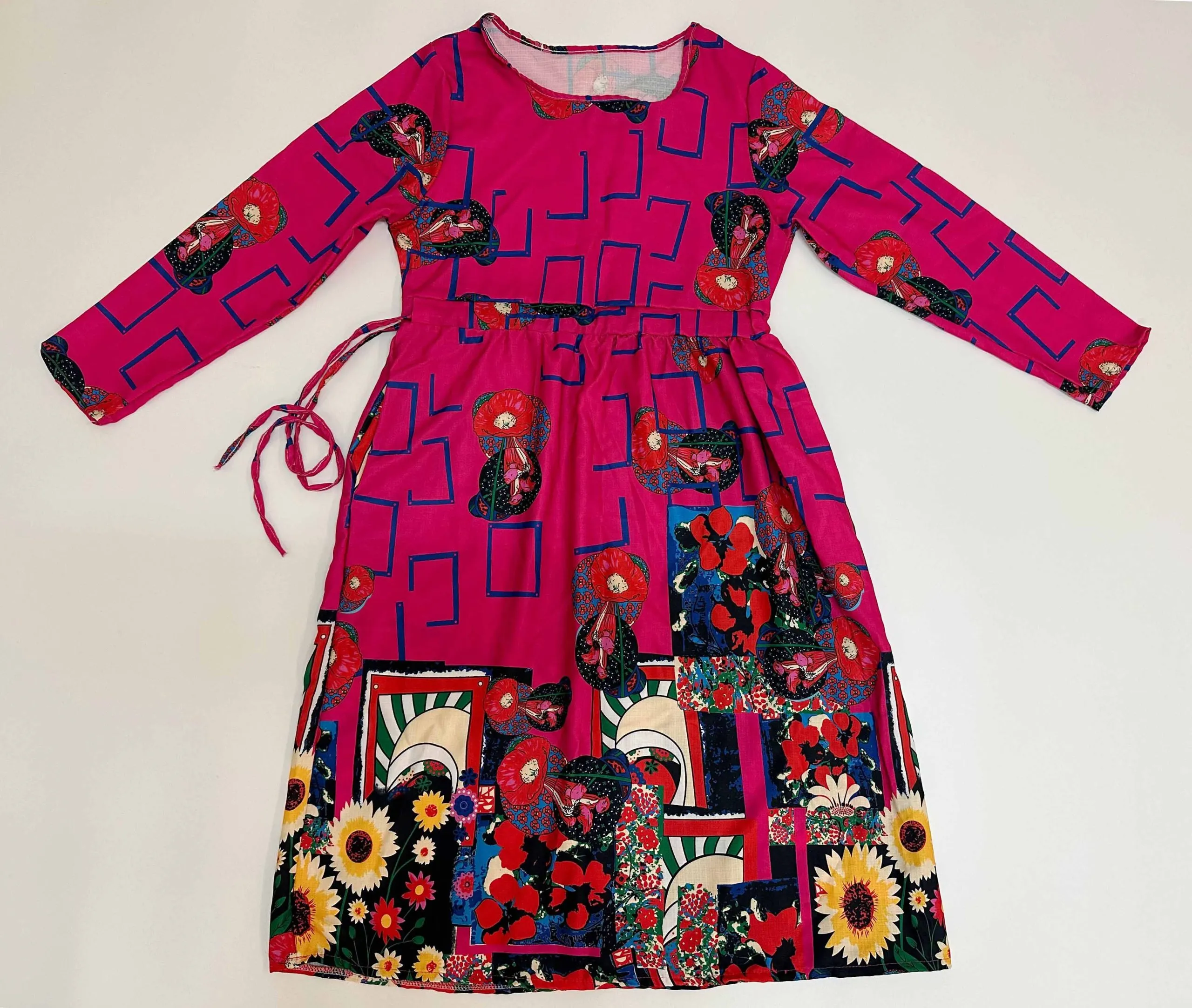 Vestido largo rosa intenso floreado de manga larga de 120x98x38x53cm