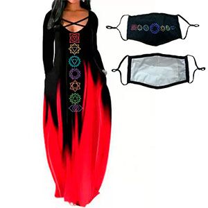 Vestido negro con rojo diseño chakras talla S con cubrebocas
