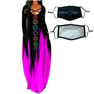 Vestido negro con Violeta diseño chakras talla M con cubrebocas